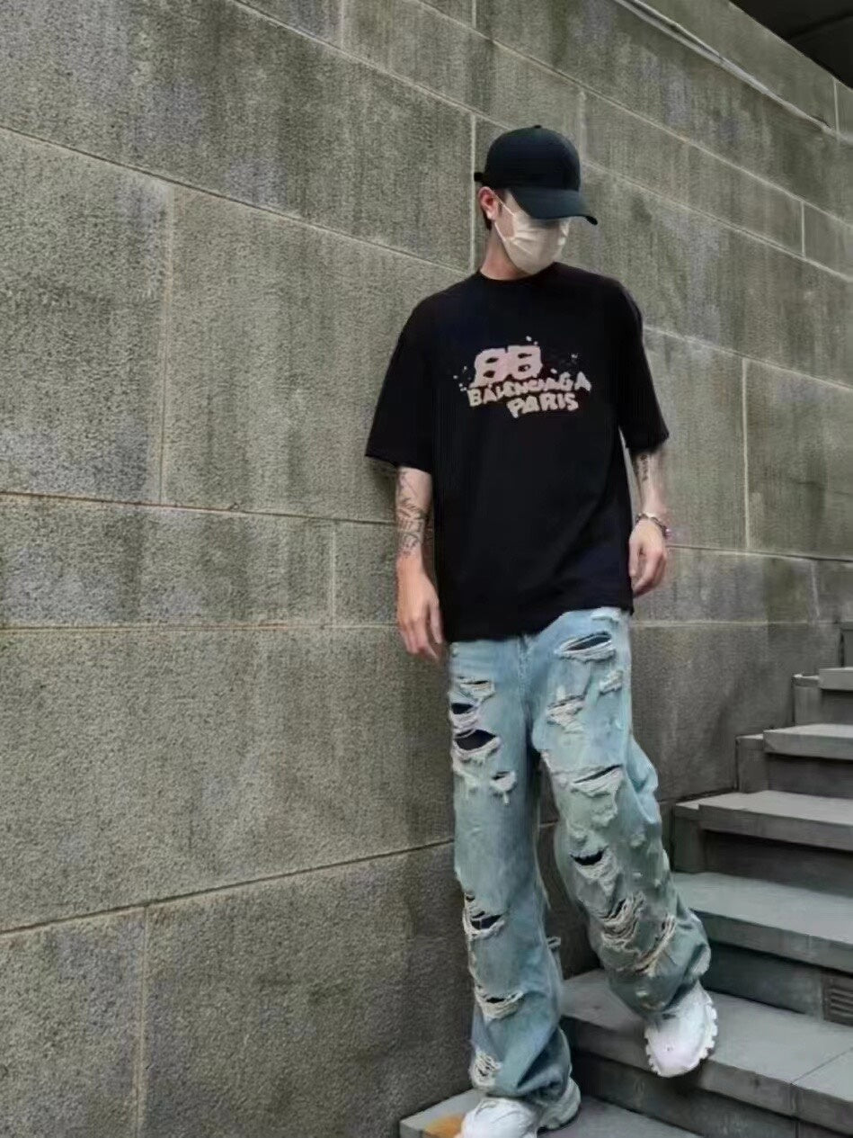 Balenciaga Black Graffiti Short Sleeve Shirt
