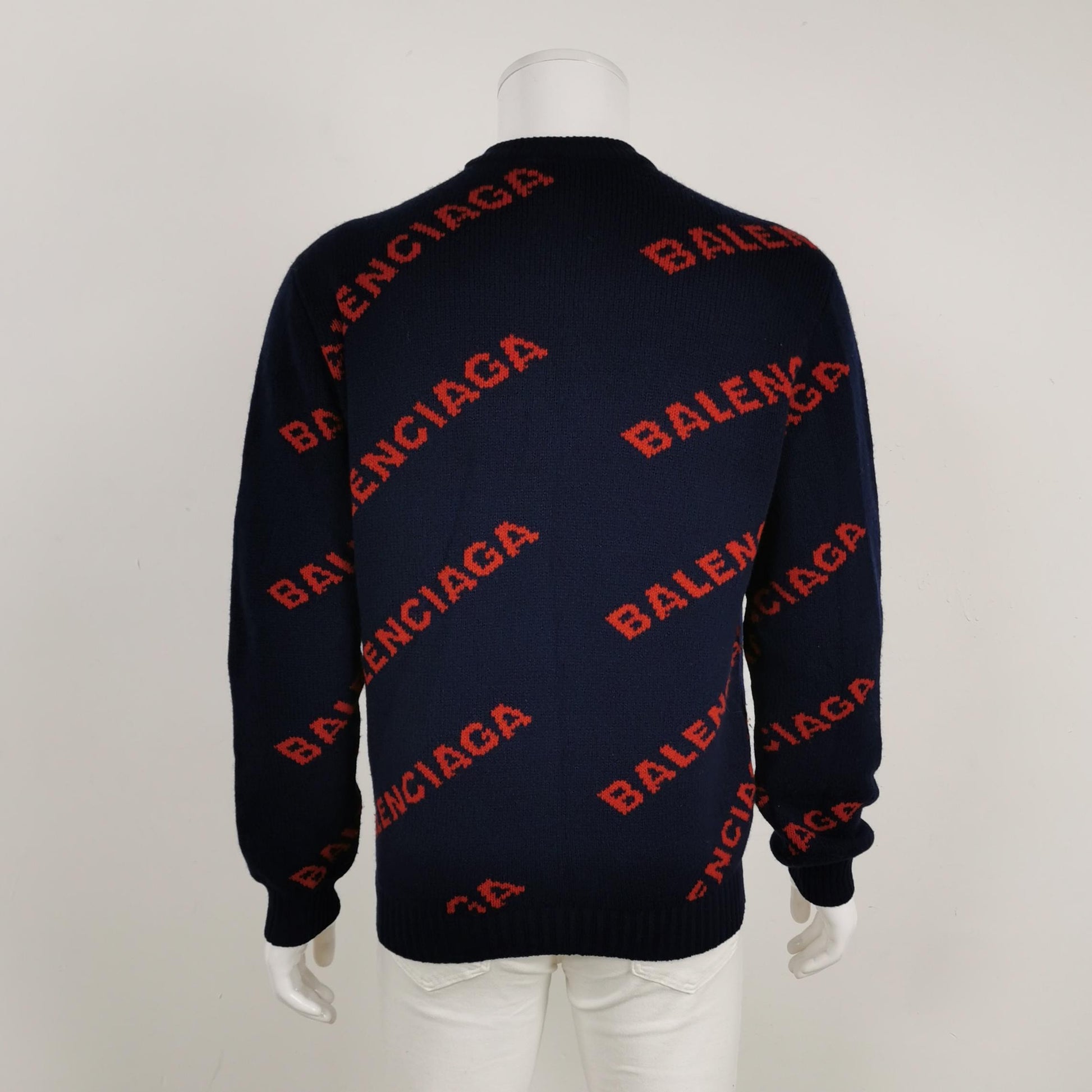 Balenciaga Wool Blend Logo Print Crewneck Sweater S