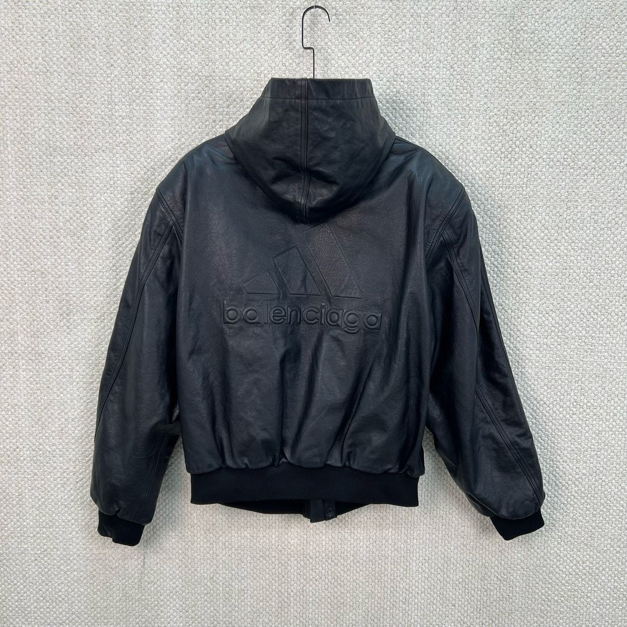 balenciaga x adidas black hooded leather jacket