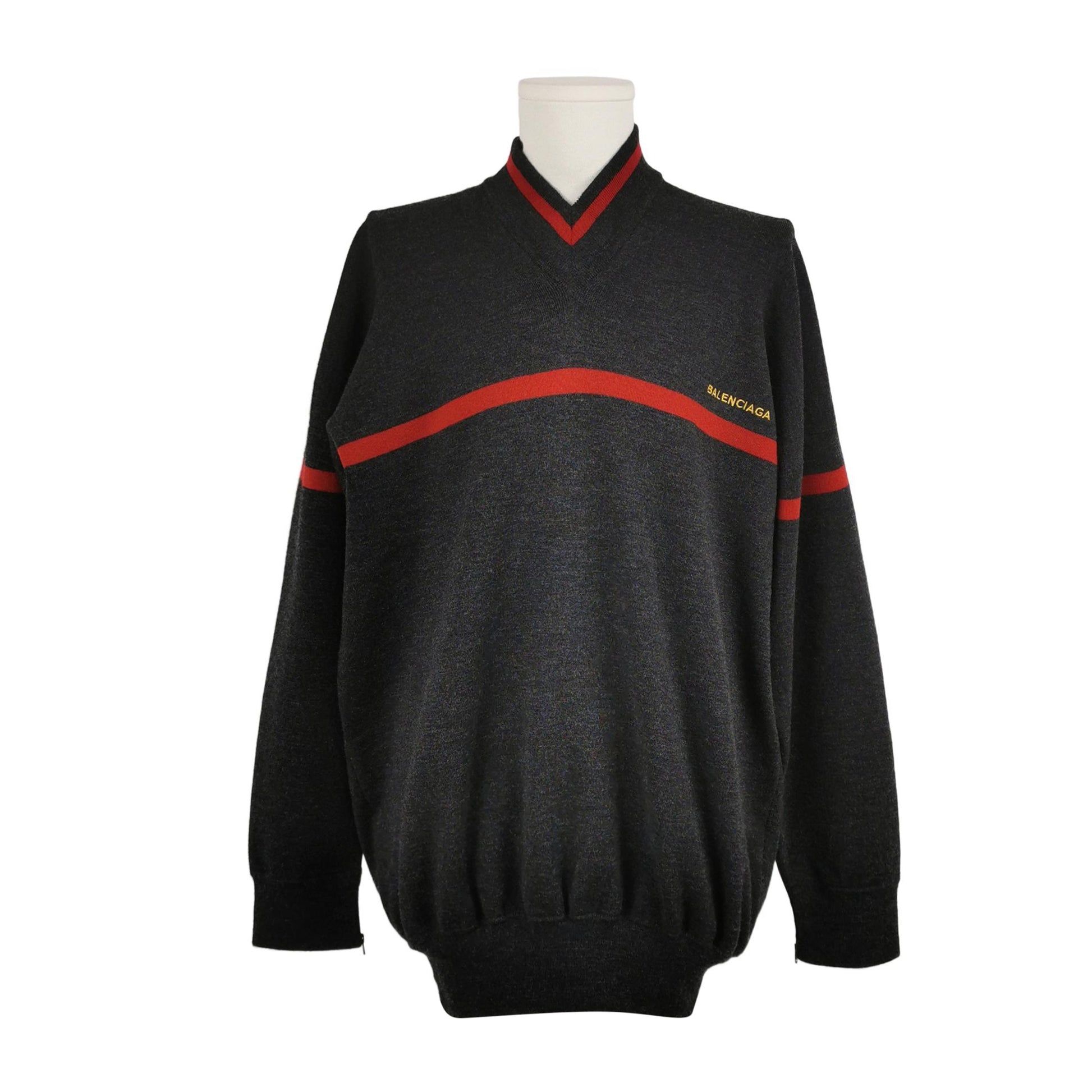 Balenciaga XS Wool Blend Colorblock Logo V-Neck Sweater