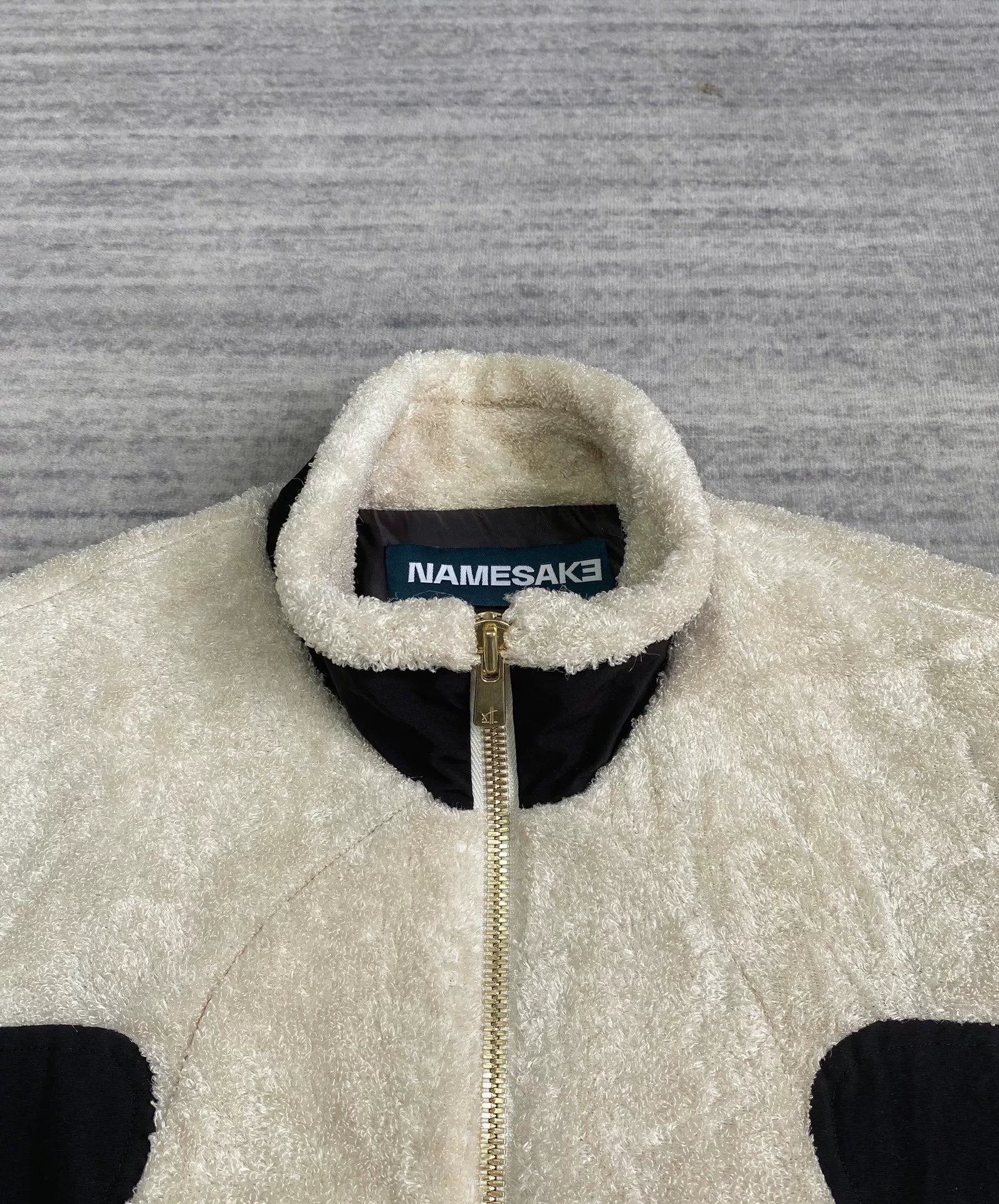 black and white fleece jacket with color blocking