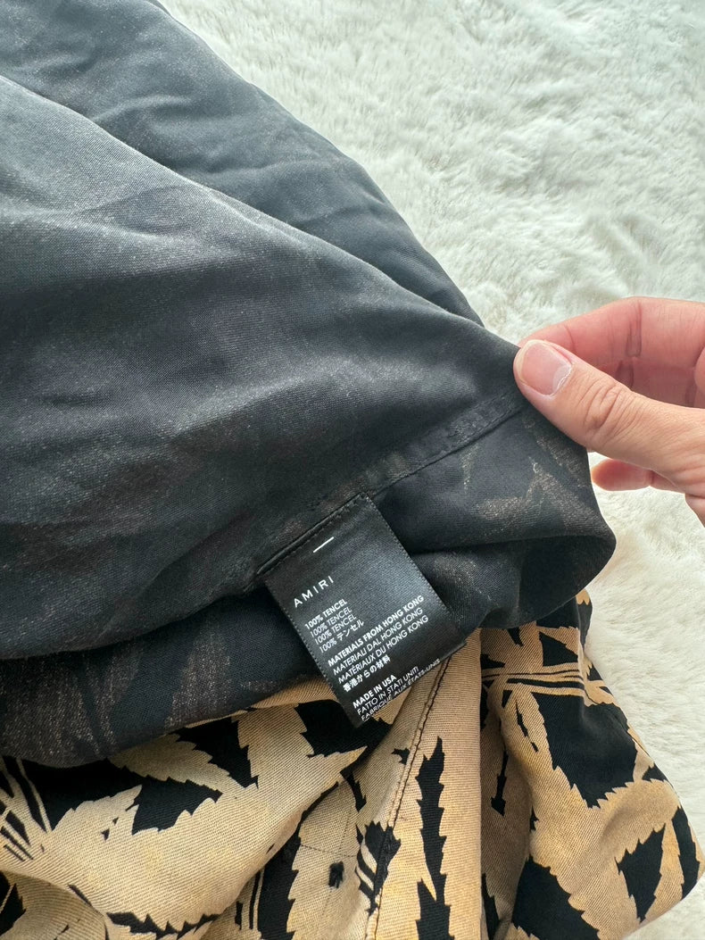 Black Leaf Print Short Sleeve Shirt