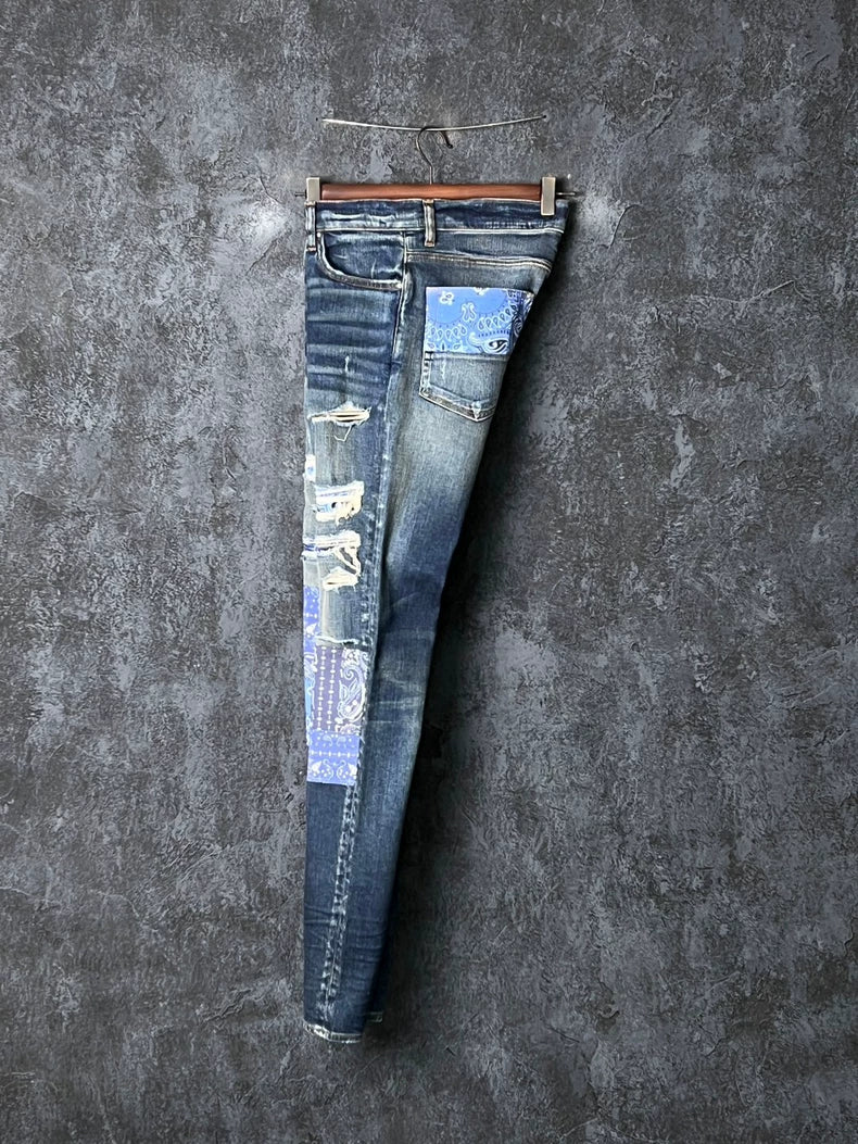 Blue Patchwork Denim Pants