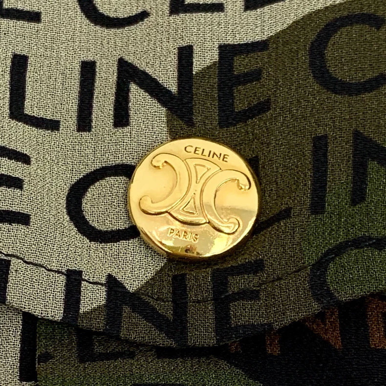Celine Camo Logo Silk Short-Sleeve Dress-yf