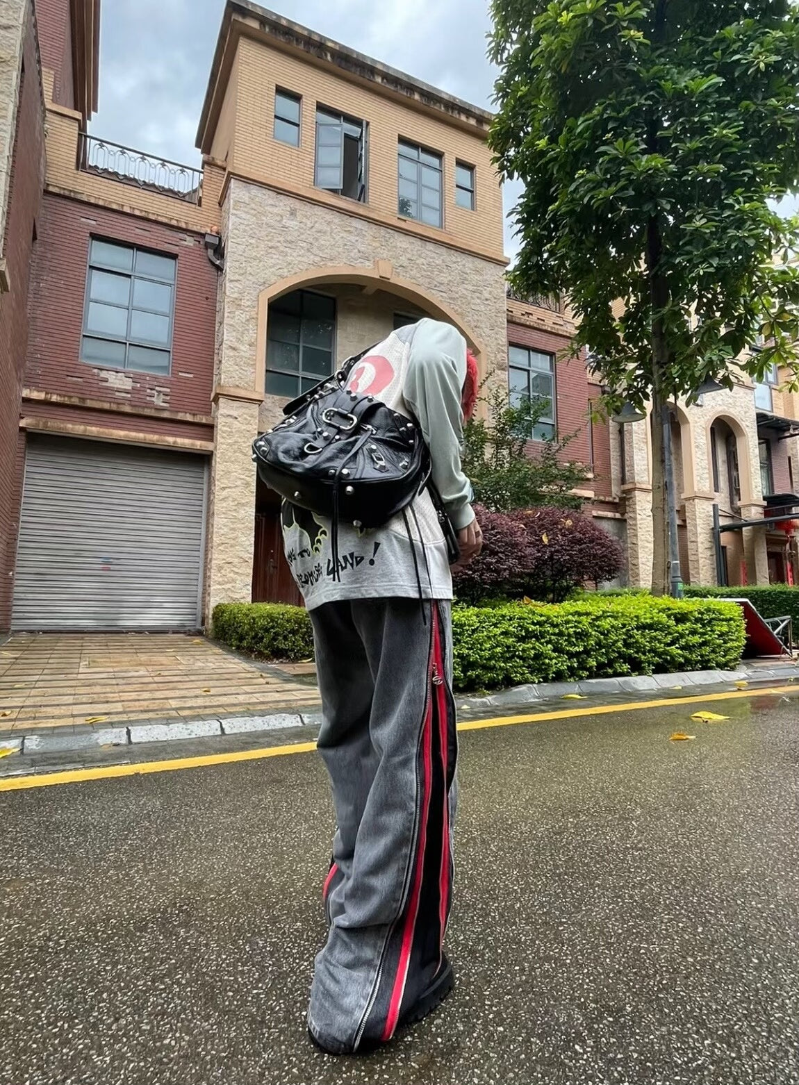diesel gray red zipper flared jeans