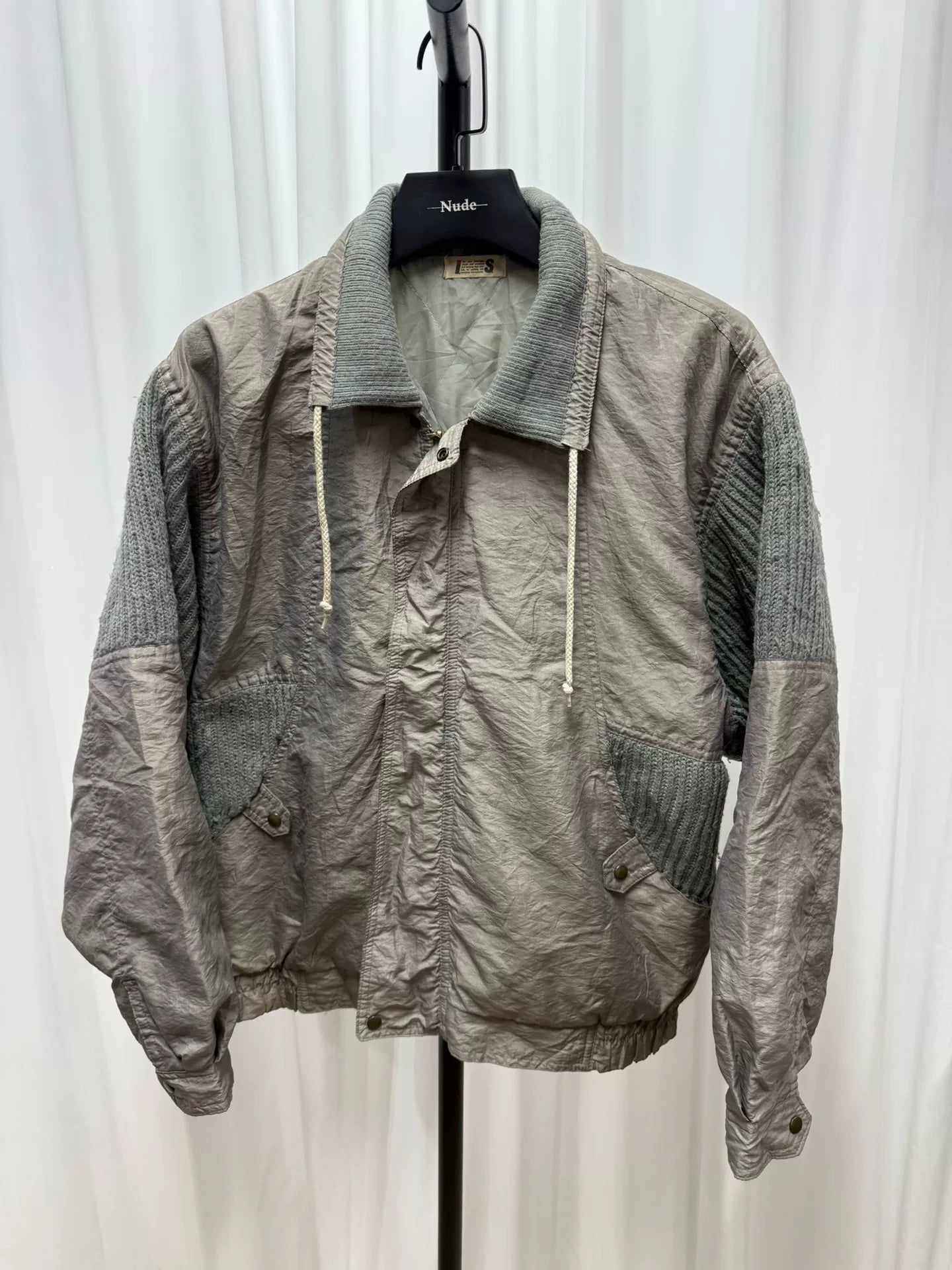 issey miyake logo patch metallic nylon jacket