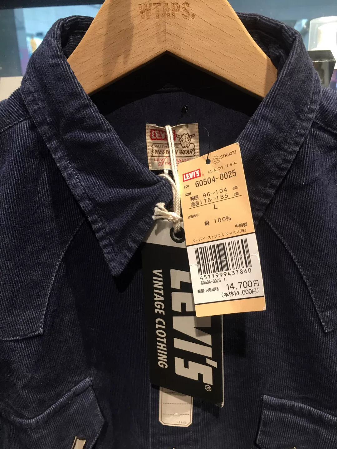levi's lvc corduroy shirt in navy and wine
