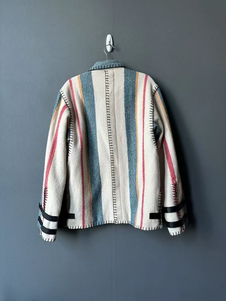 Loewe Striped Wool Jacket with Leather Patch