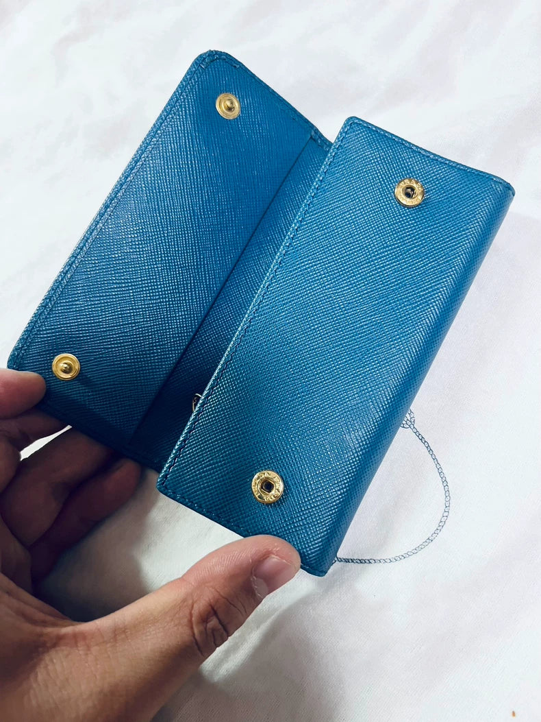 Prada Leather Key Holder in Classic Blue