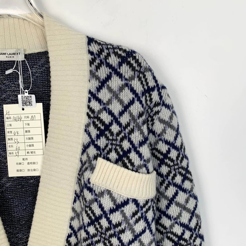 Saint Laurent Wool Knitted Cardigan in Checkered Design
