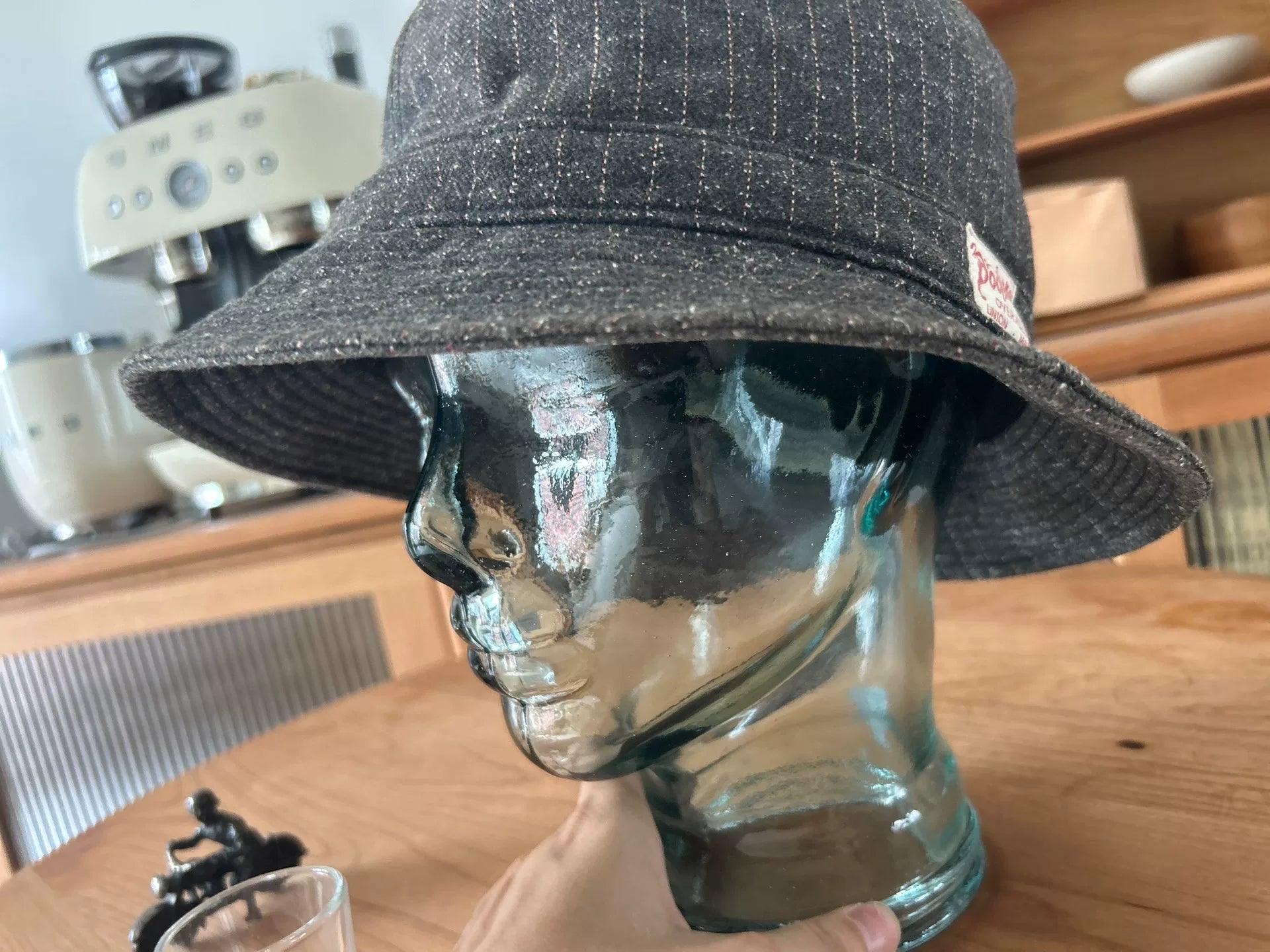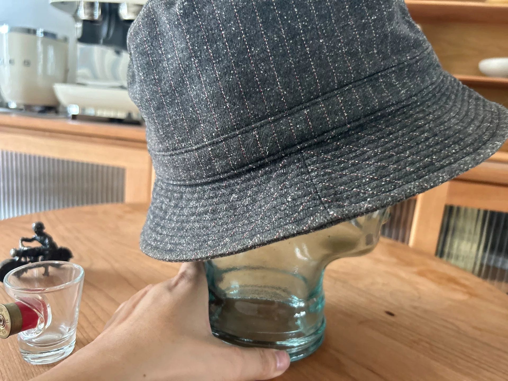 unique gray bucket hat with logo patch