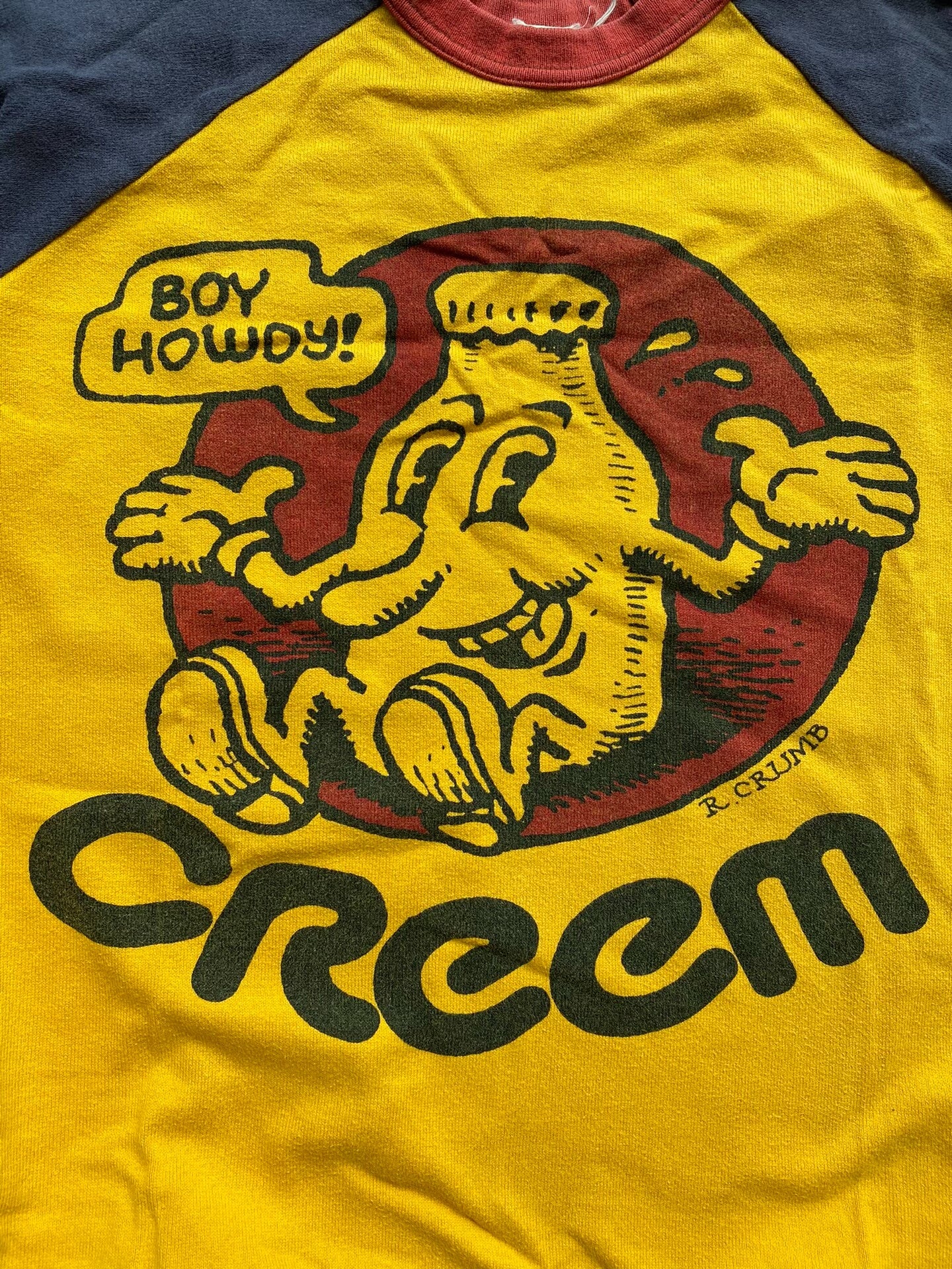yellow blue graphic tee with 3/4 sleeves