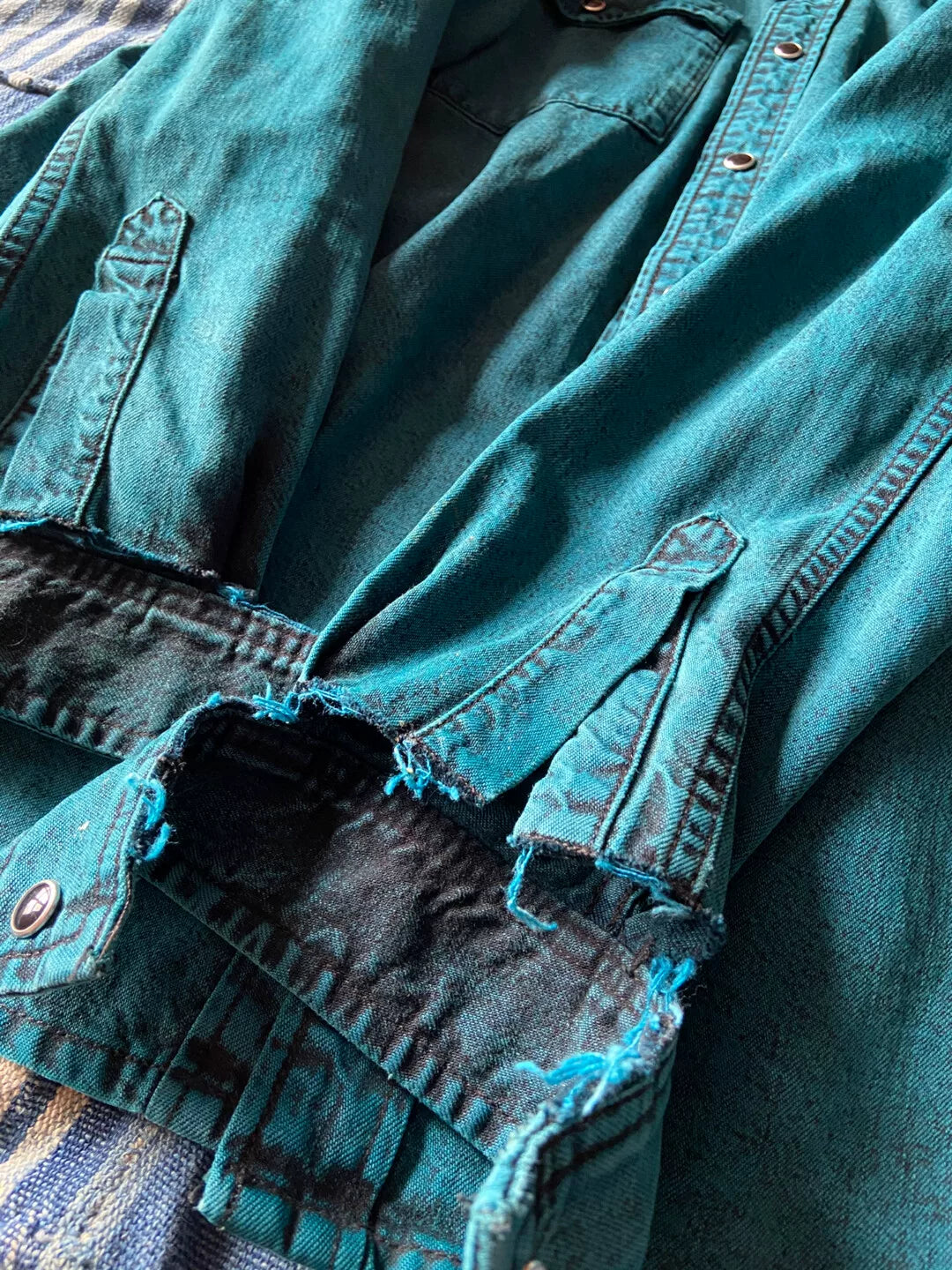 balenciaga denim shirt with destroyed cuffs