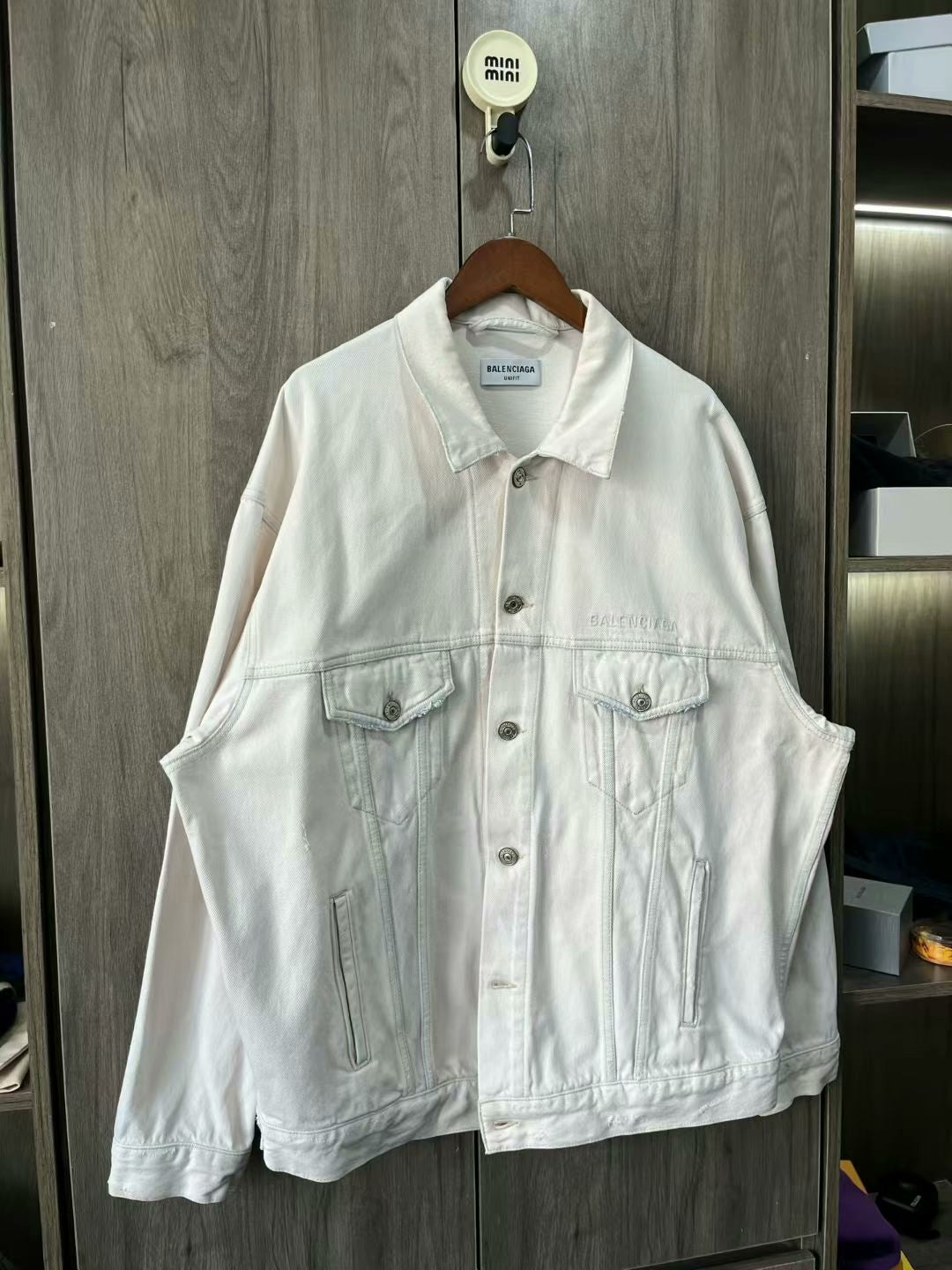 balenciaga white embroidered denim jacket xs