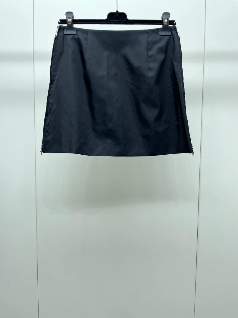 Black Crystal Triangle Logo Mini Skirt