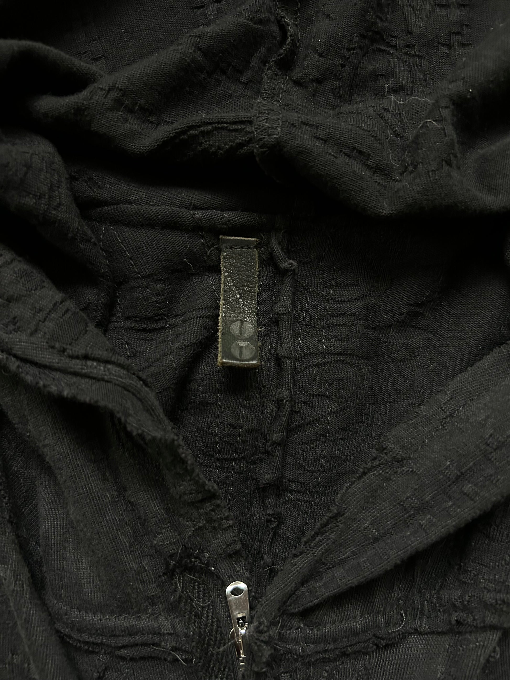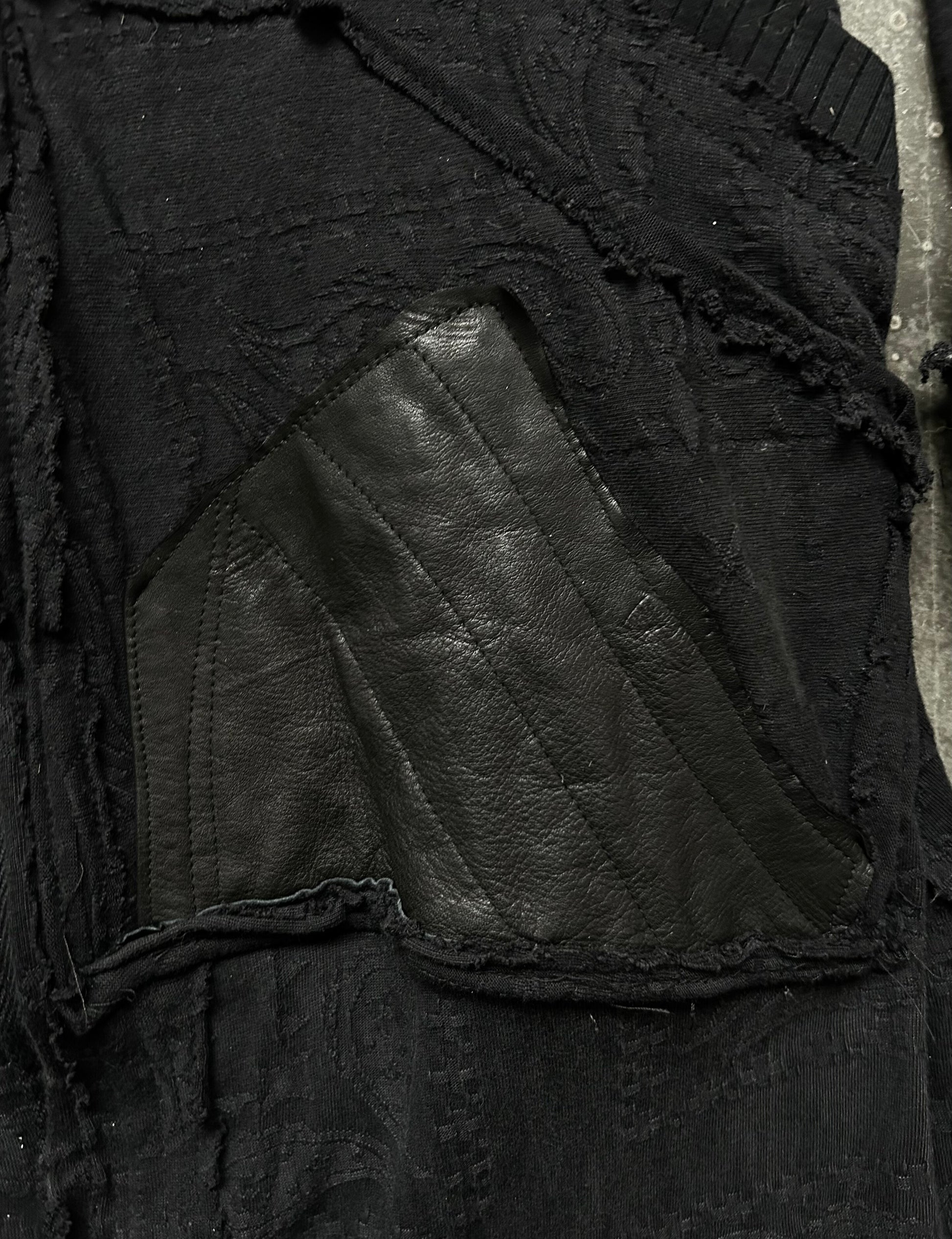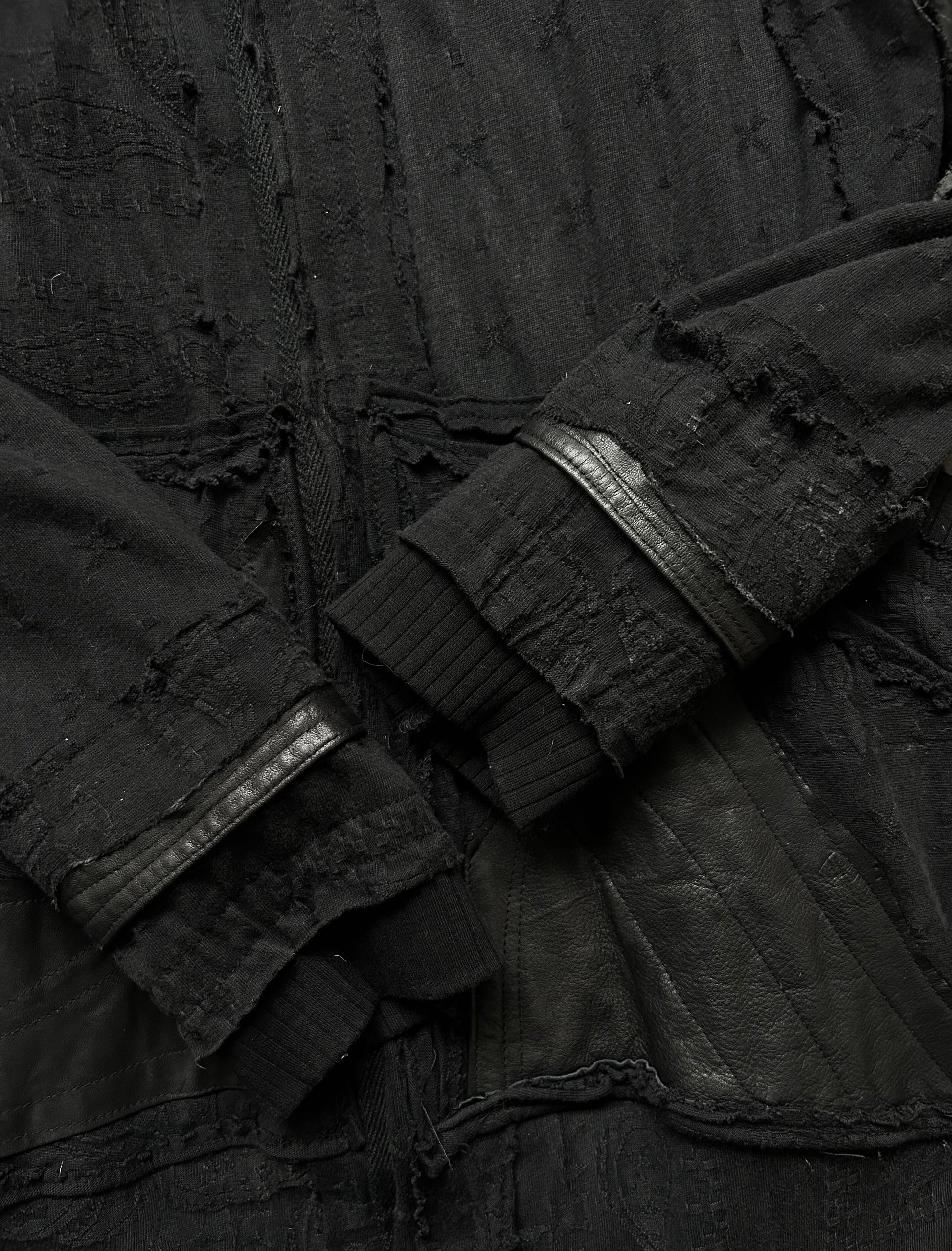 black patchwork hooded outerwear jacket