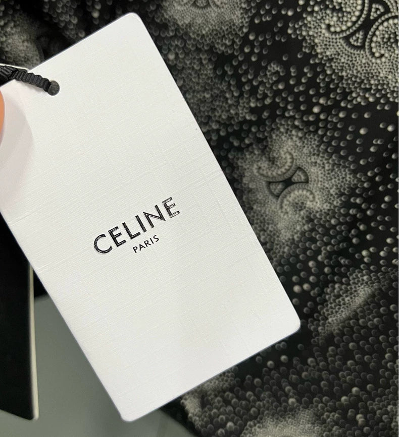 Celine Black Logo Print Short Sleeve Shirt-yf