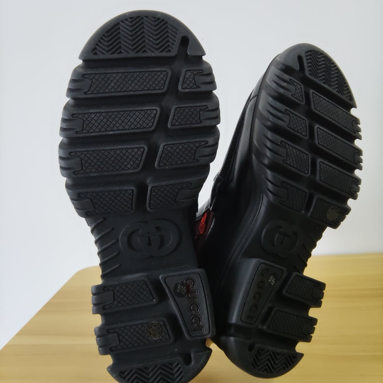 Gucci Leather GG Knit Ankle Boots in Red and Black 0079