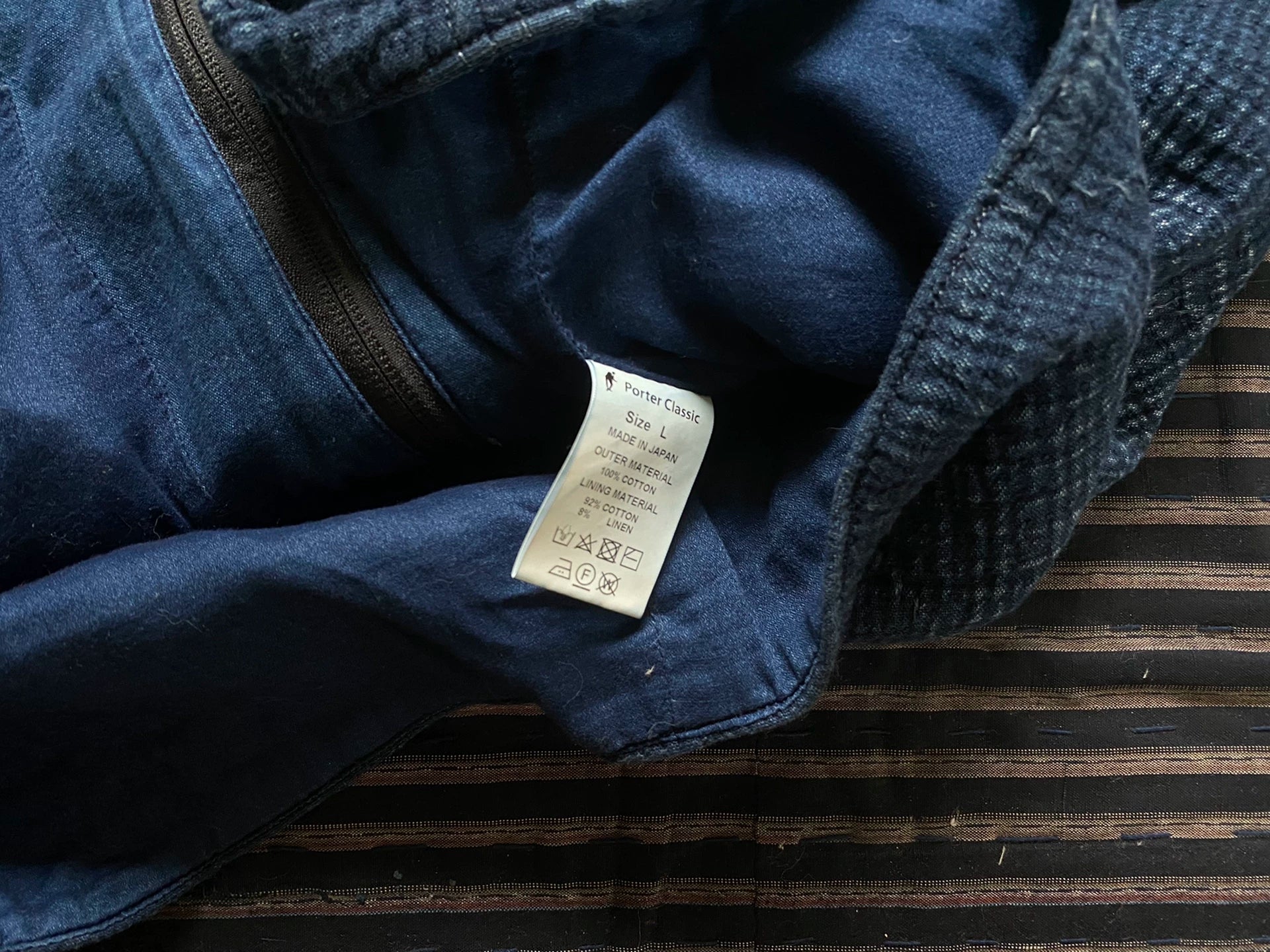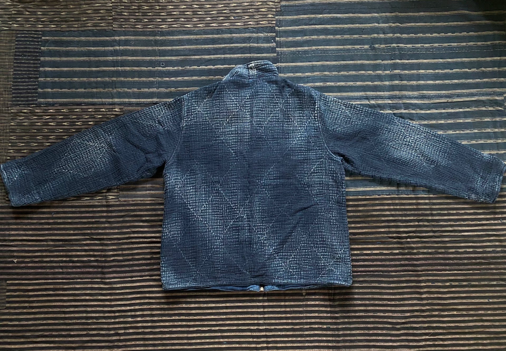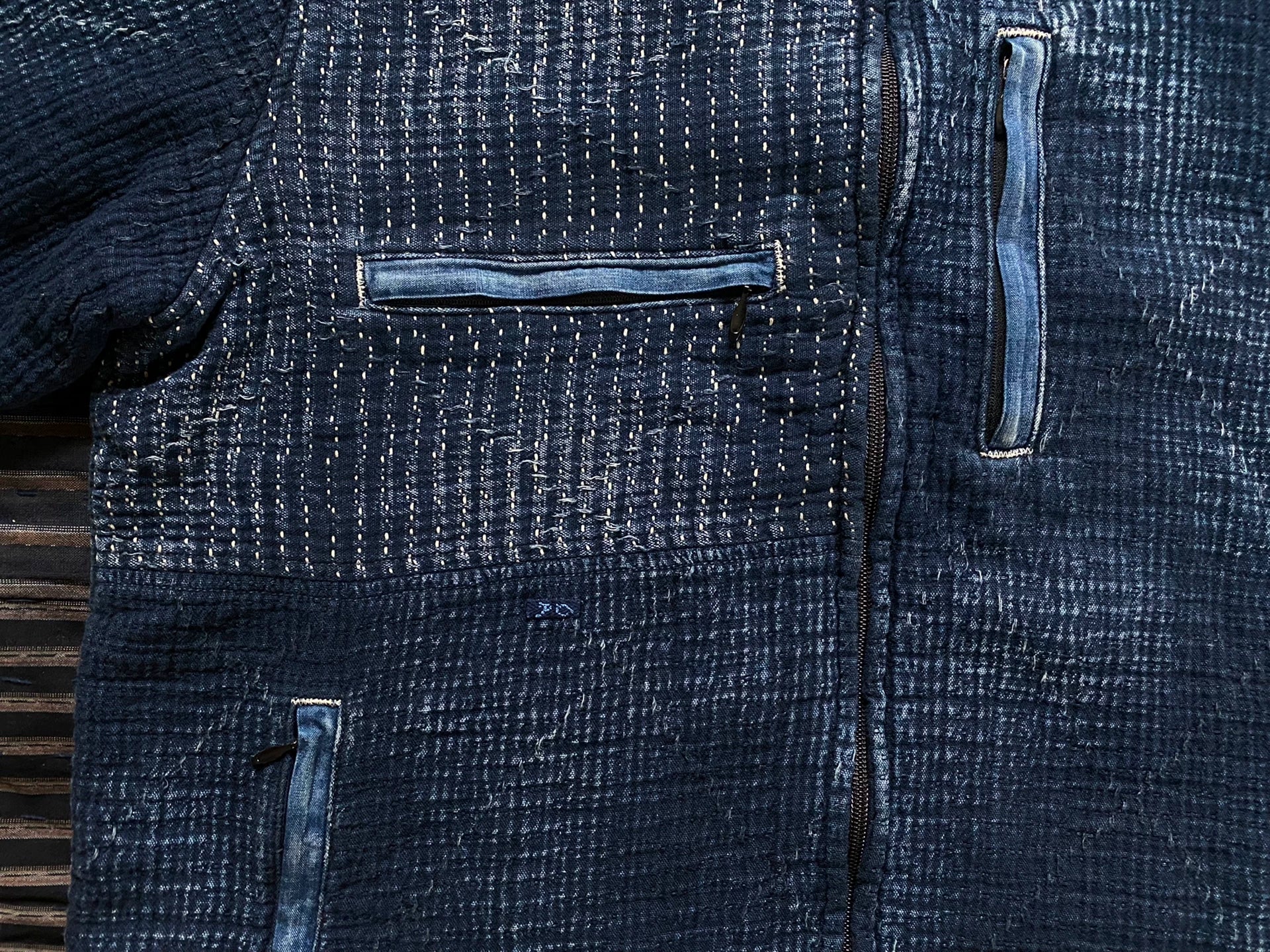 indigo sashiko light zip up outdoor jacket