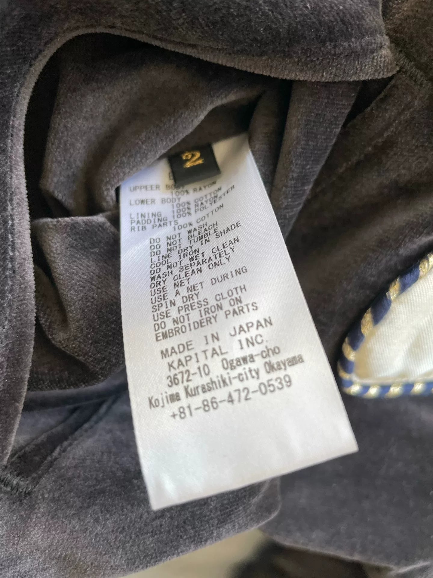 KAPITAL Velvet Patchwork Embroidered Jacket