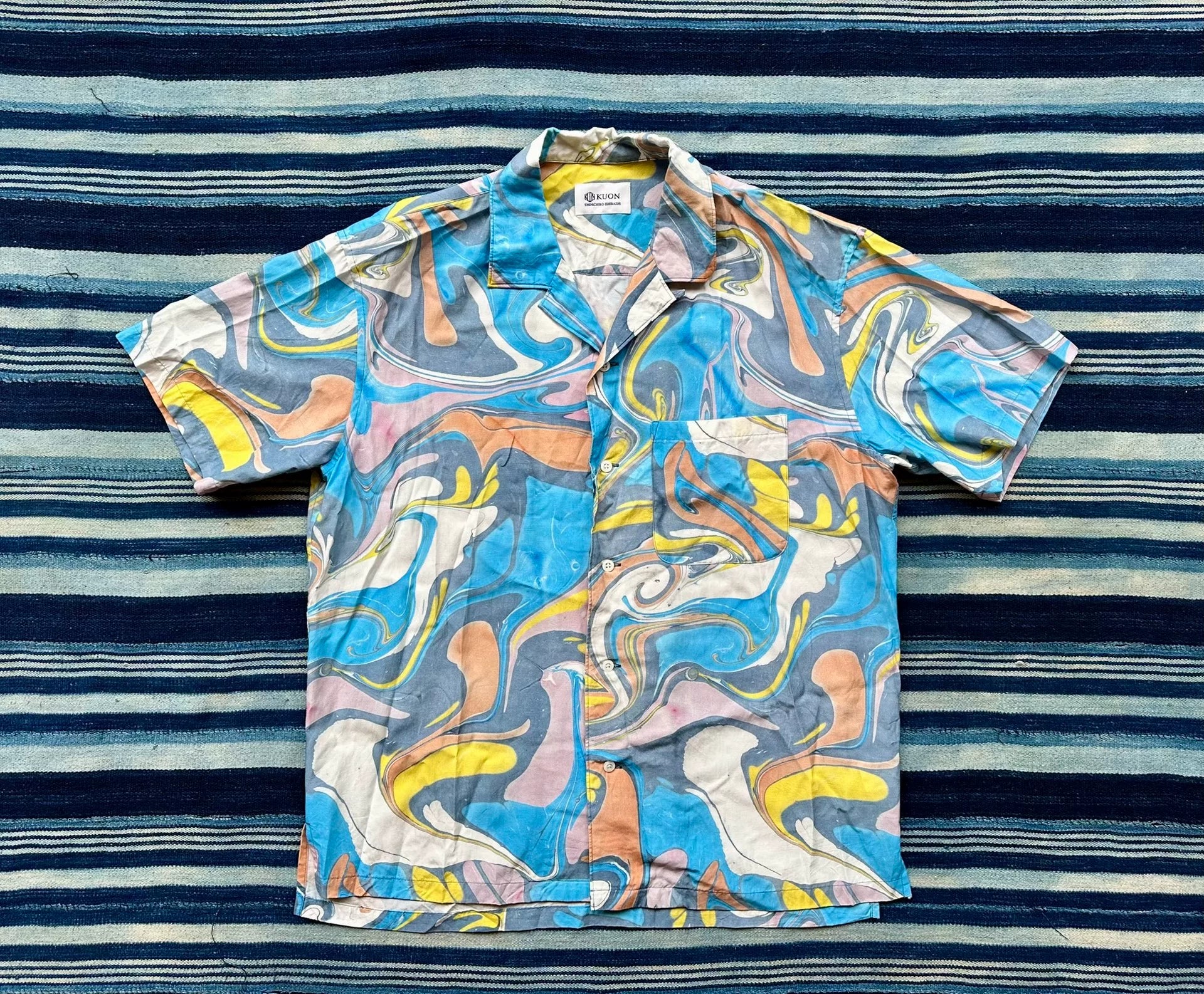 kuon suminagashi camp collar shirt