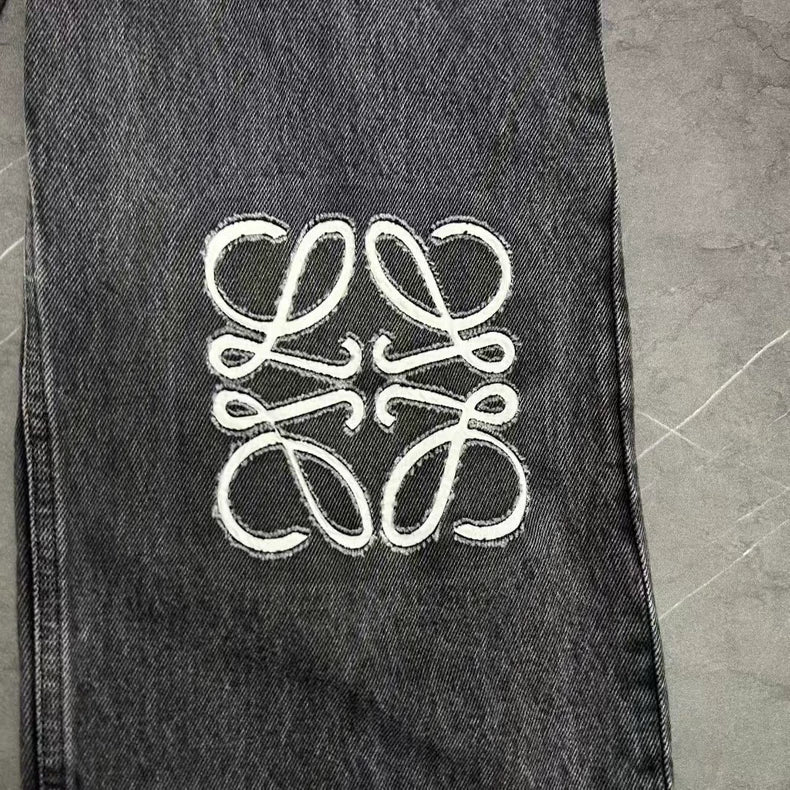 LOEWE Black Gray Knee Logo Denim Jeans