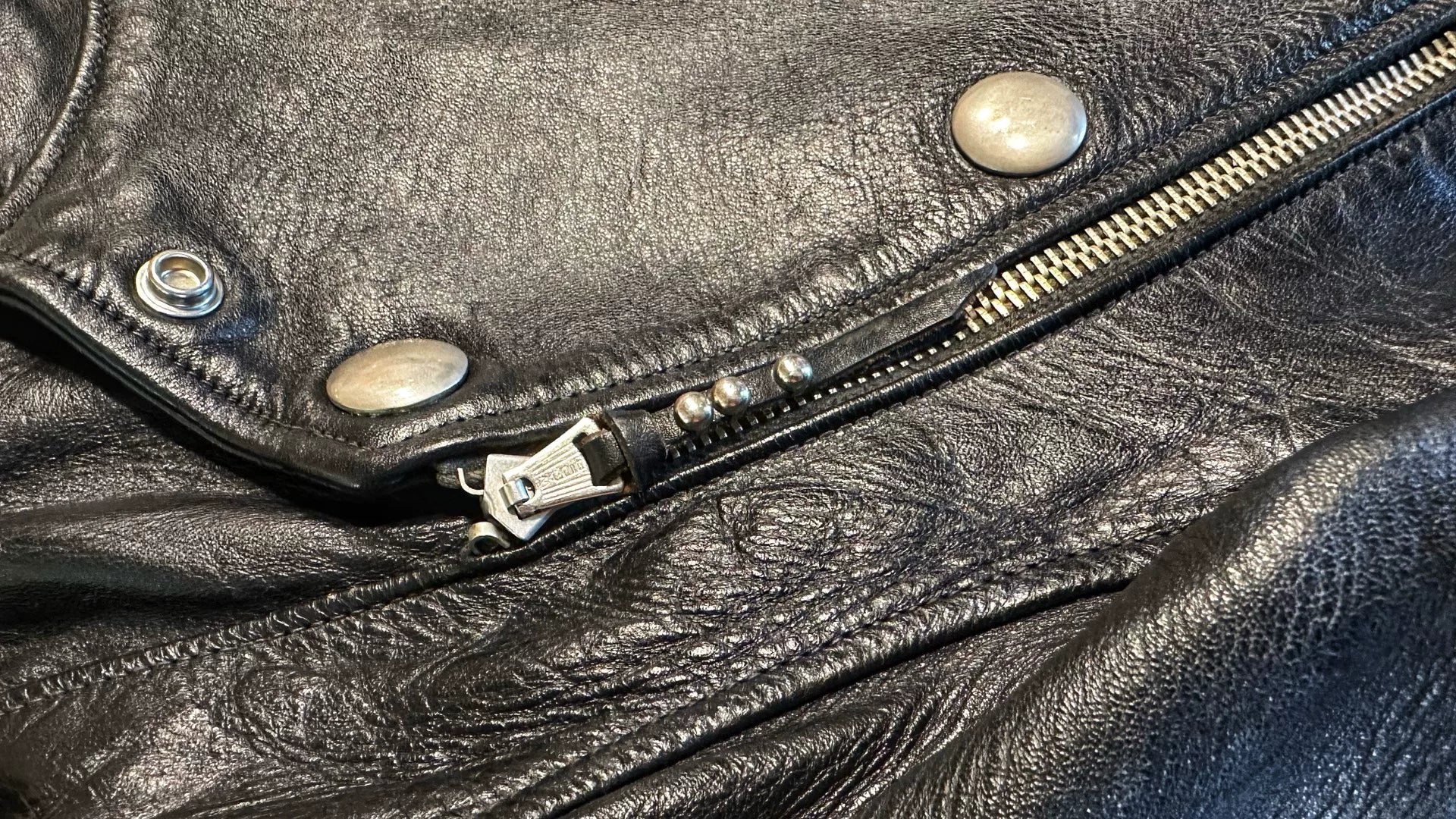 rare black leather biker jacket with buttons