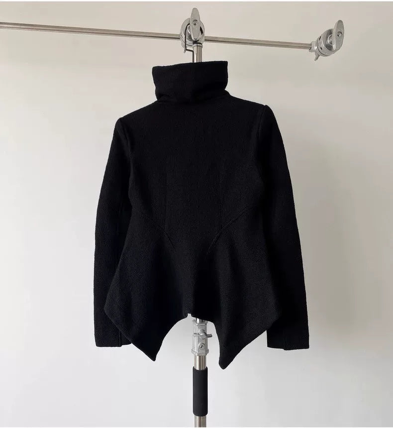 Rick Owens Black Wool High Neck Jacket