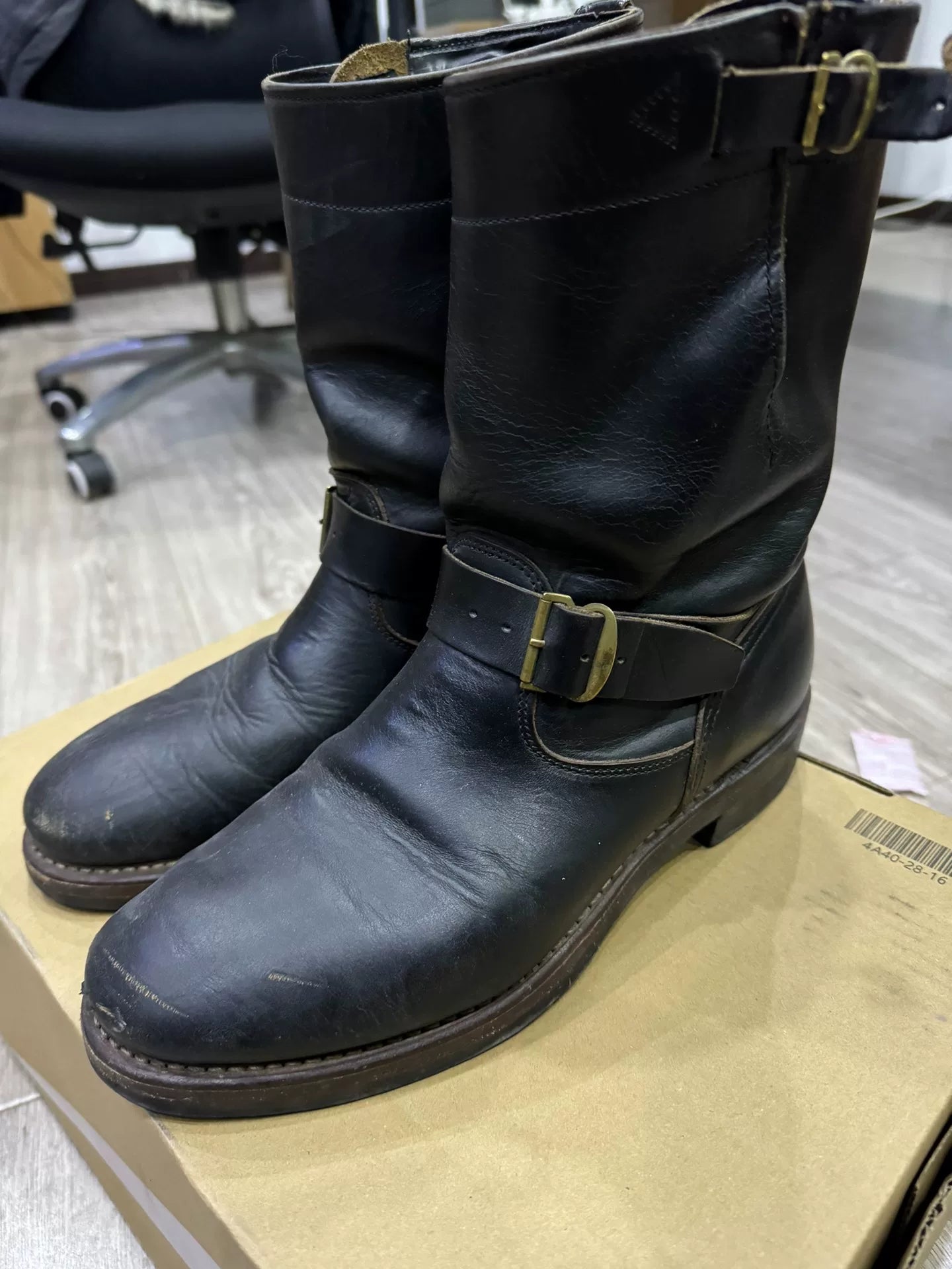 RRL Engineer Boots Black Leather Size 8D