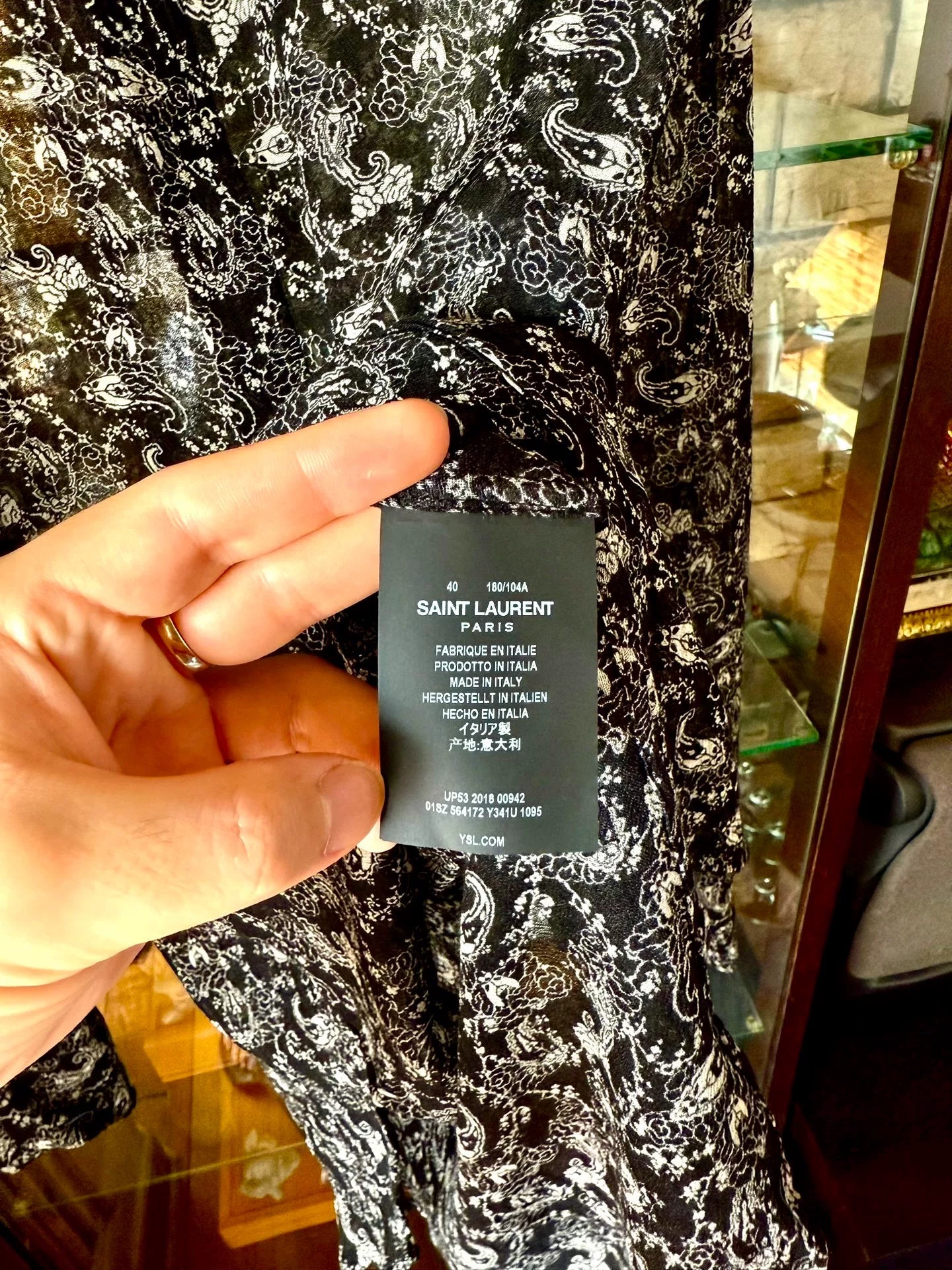saint laurent black and white paisley shirt