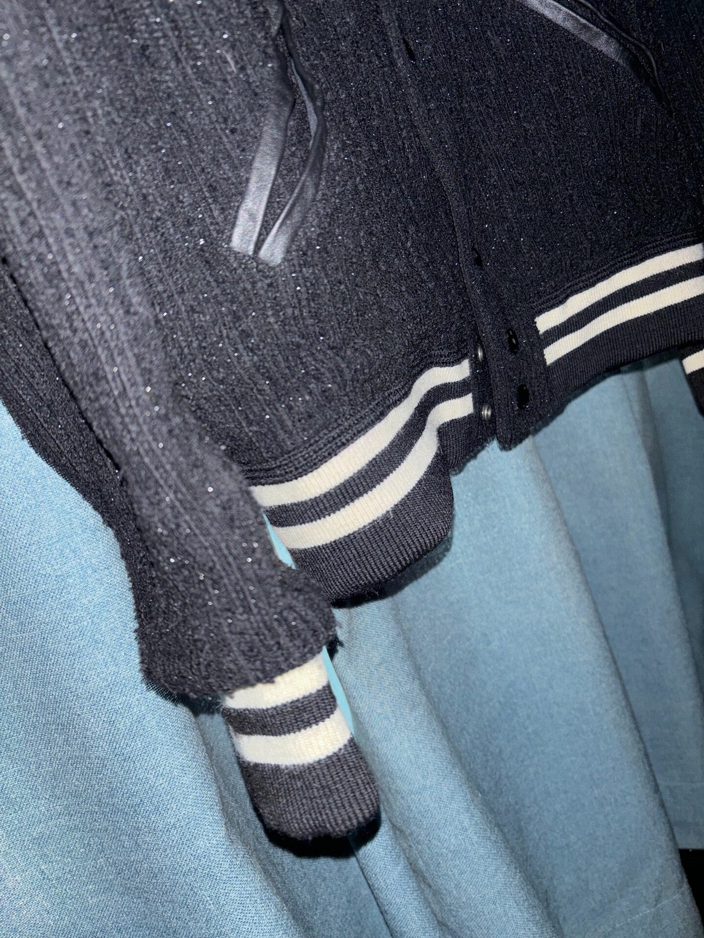 Saint Laurent Black Sparkle Baseball Jacket