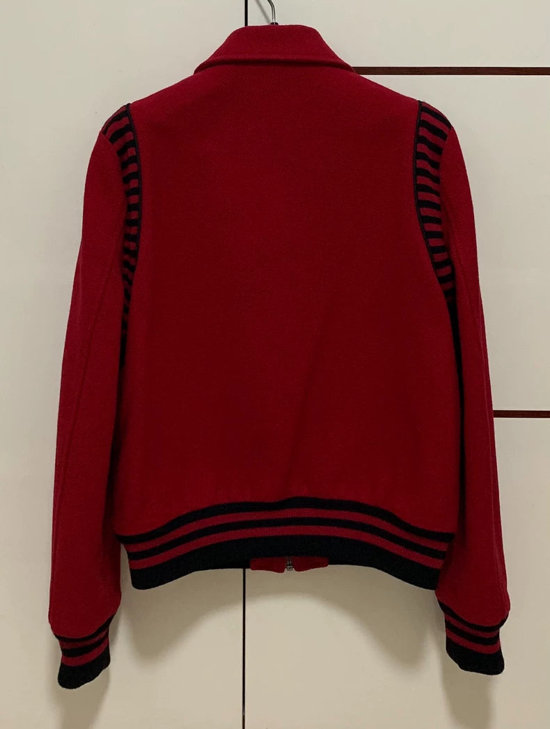 Saint Laurent Red Knit Baseball Jacket