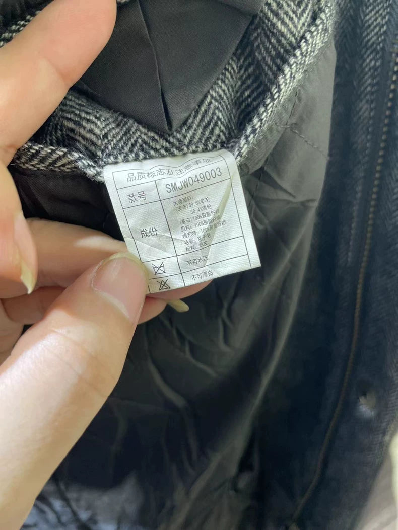 Stylish Gray Herringbone Wool Coat