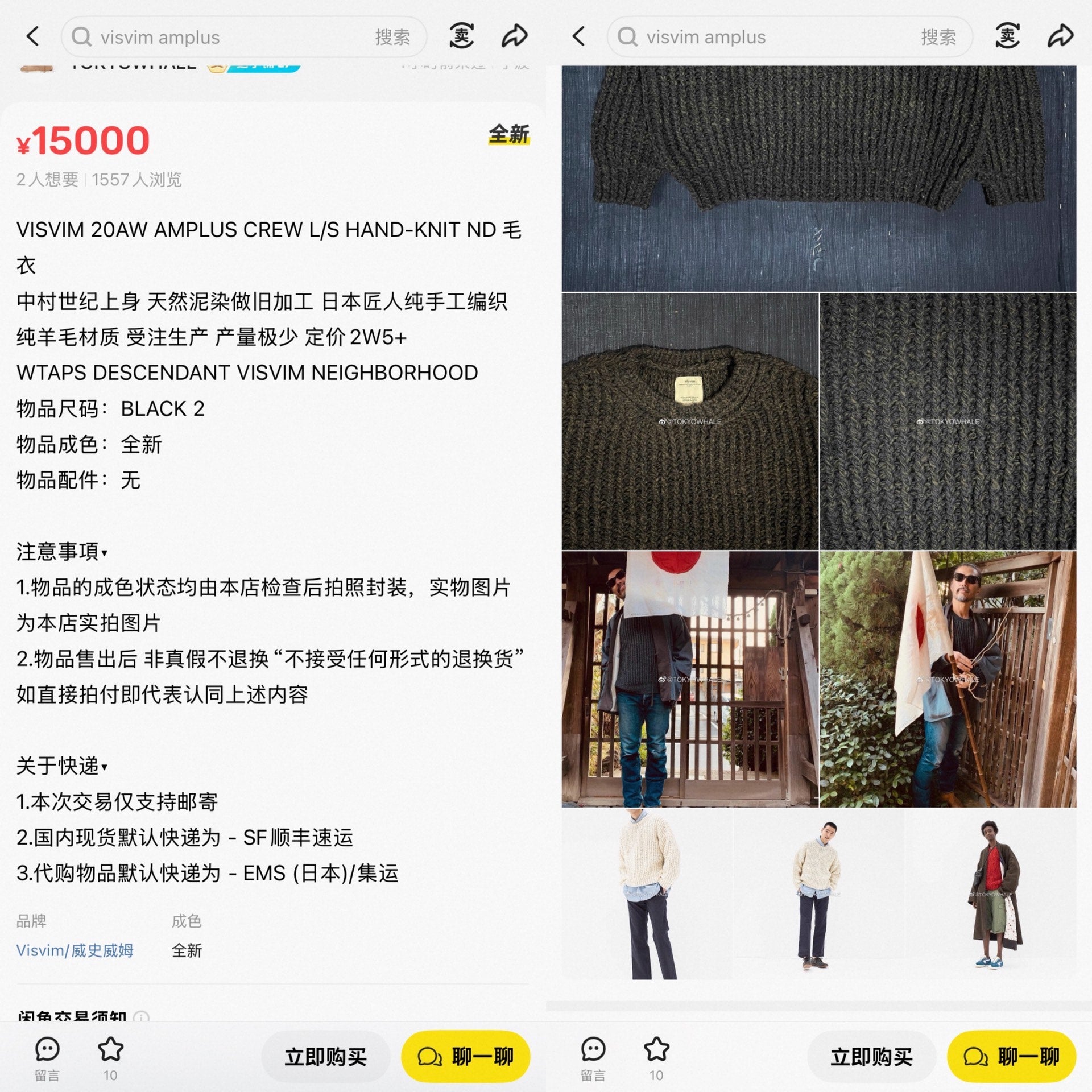 visvim amplus crew hand-knit black sweater