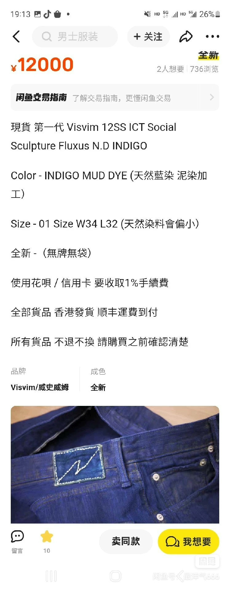 visvim indigo double dye denim pants