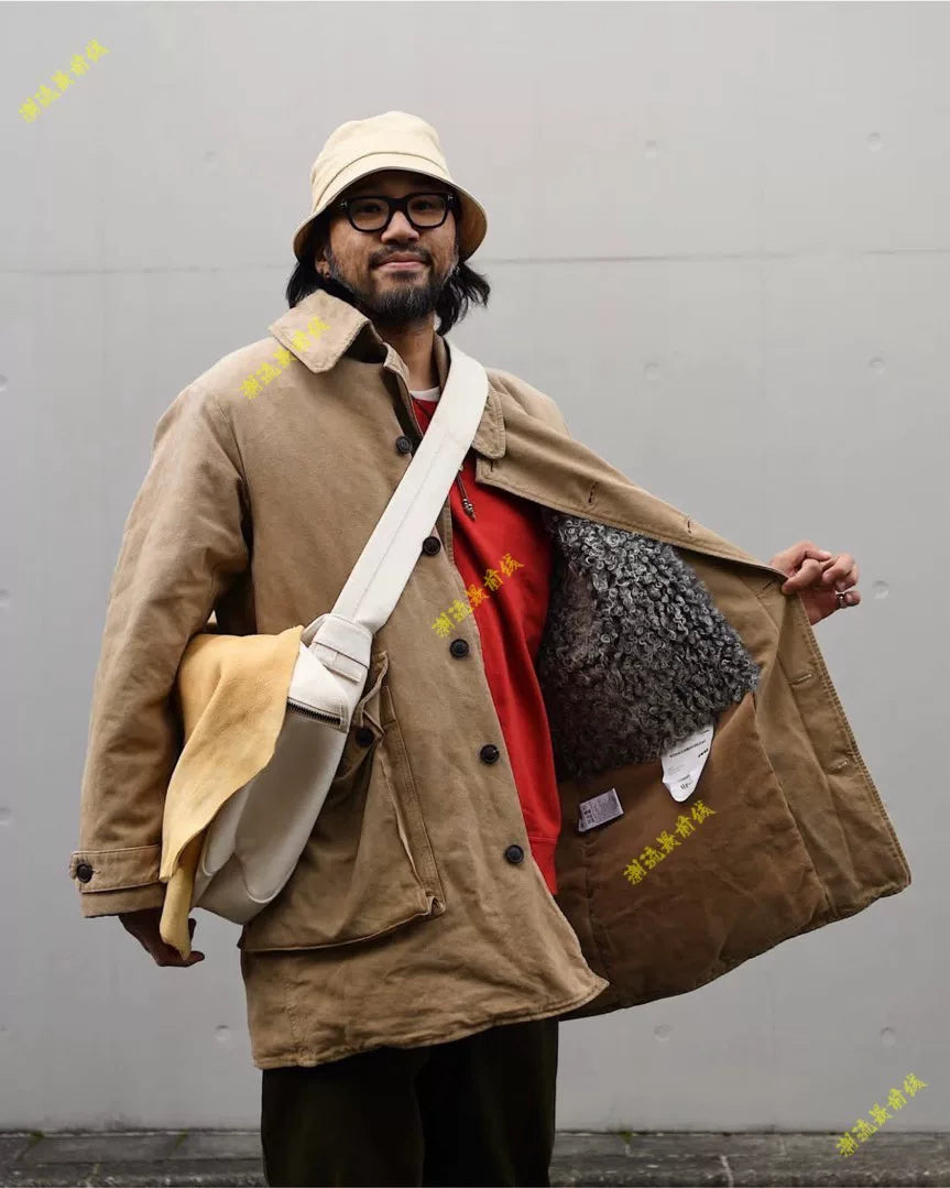 visvim winfield shearling coat in black