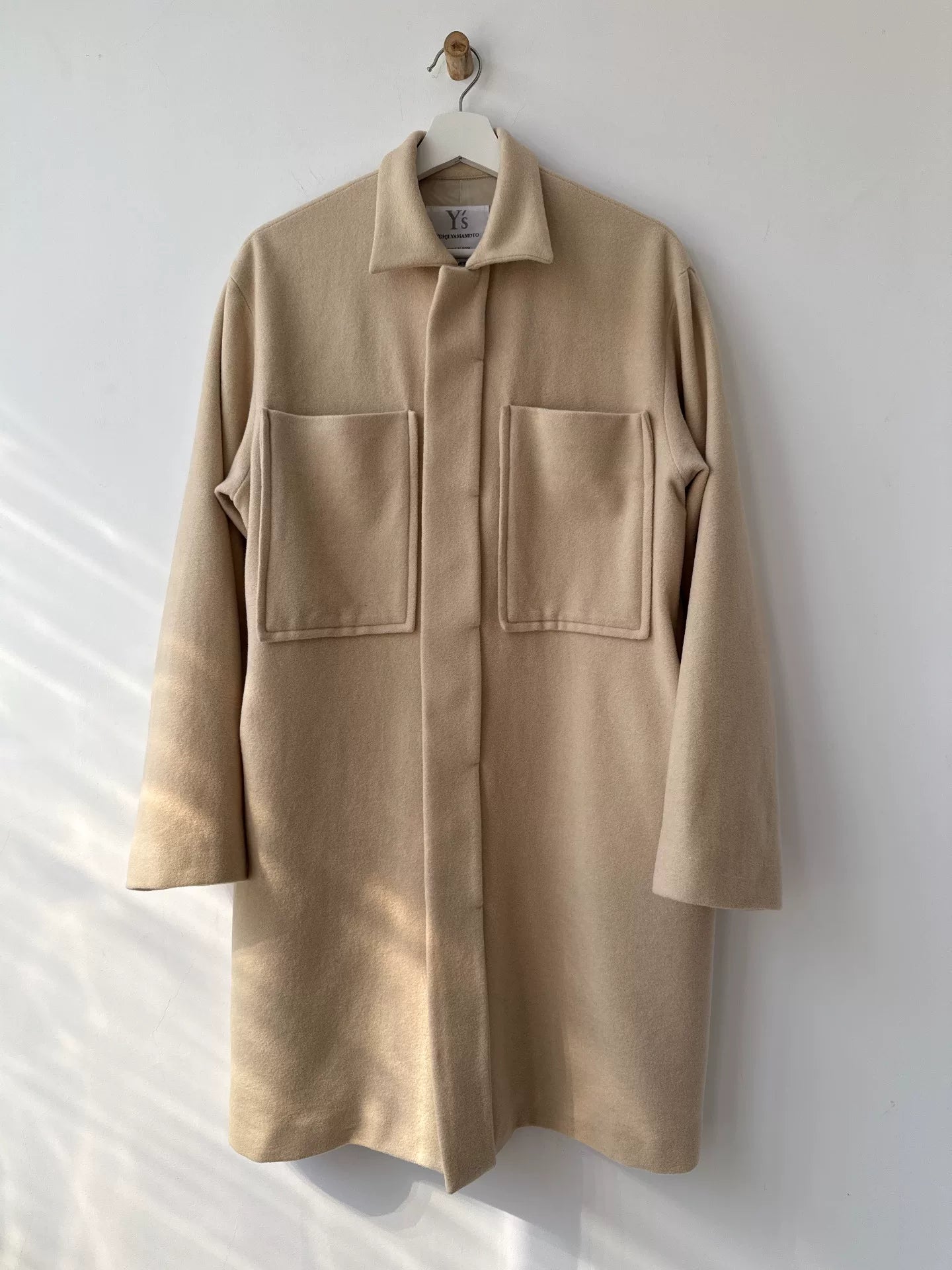 yohji yamamoto wool coat with pockets