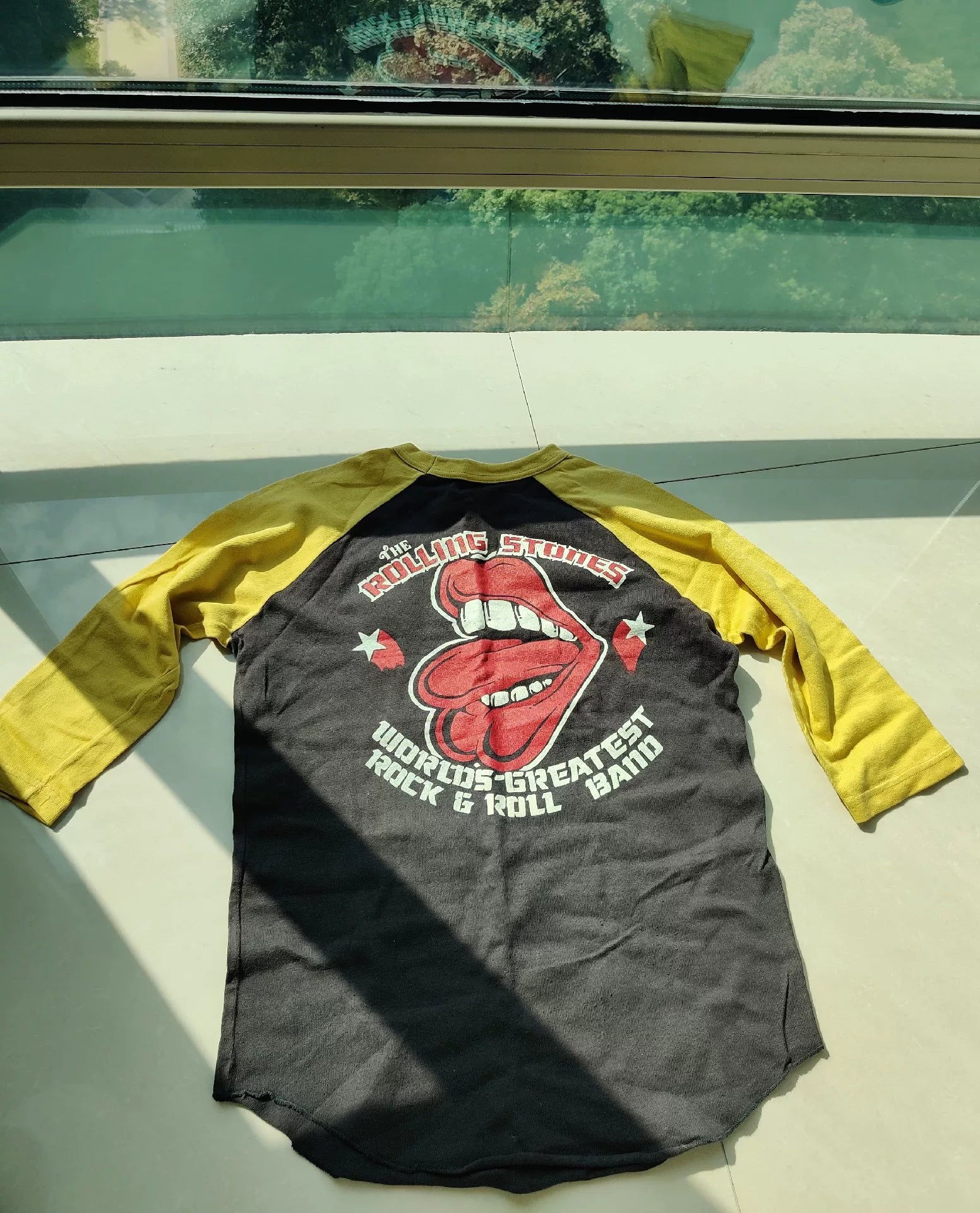 bootleggers skull graphic tee with yellow sleeves