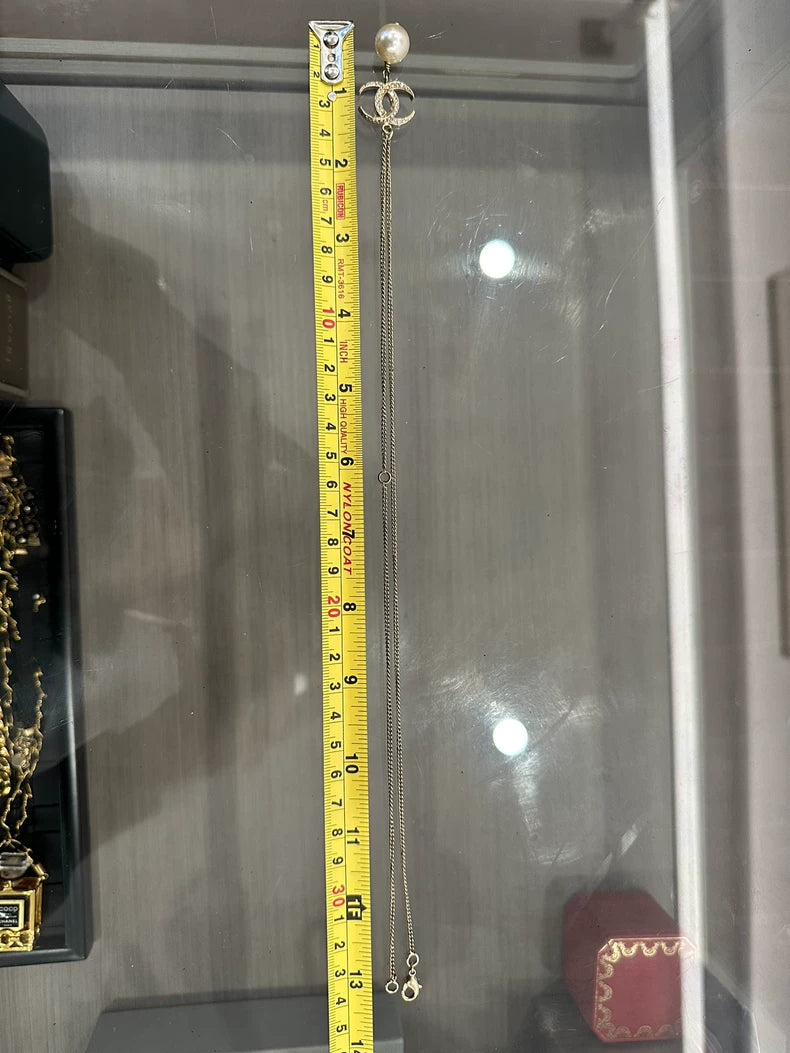 Chanel Double C Pearl Pendant Necklace