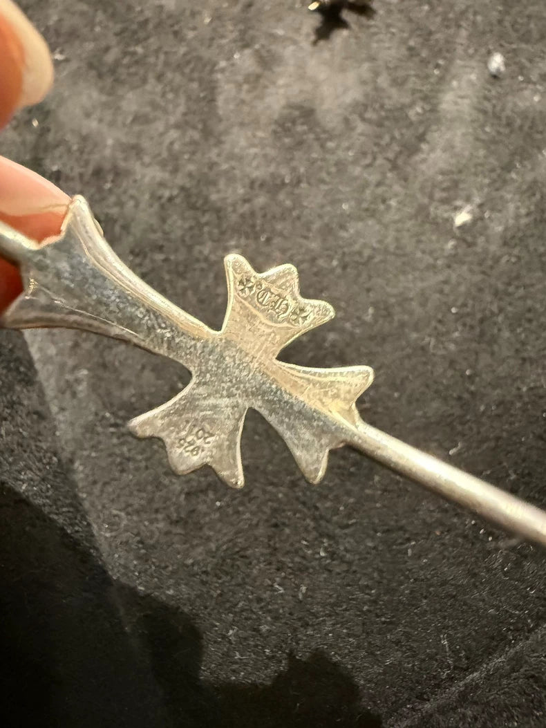 Chrome Hearts Cross Earrings with Flower Design
