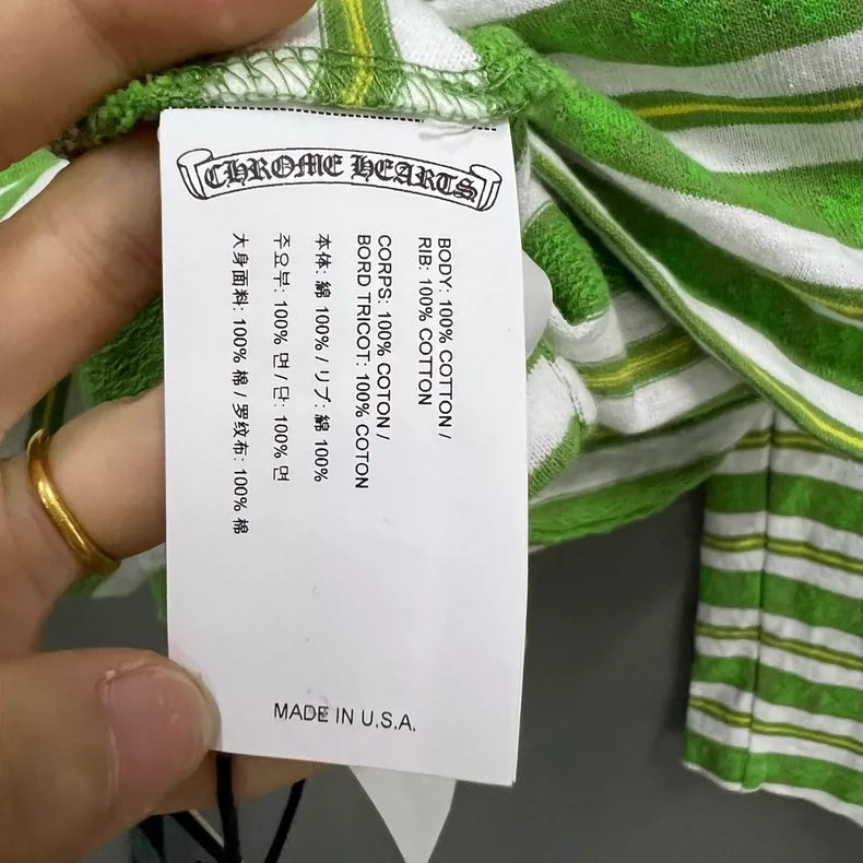 Chrome Hearts Striped Long Sleeve Polo Shirt