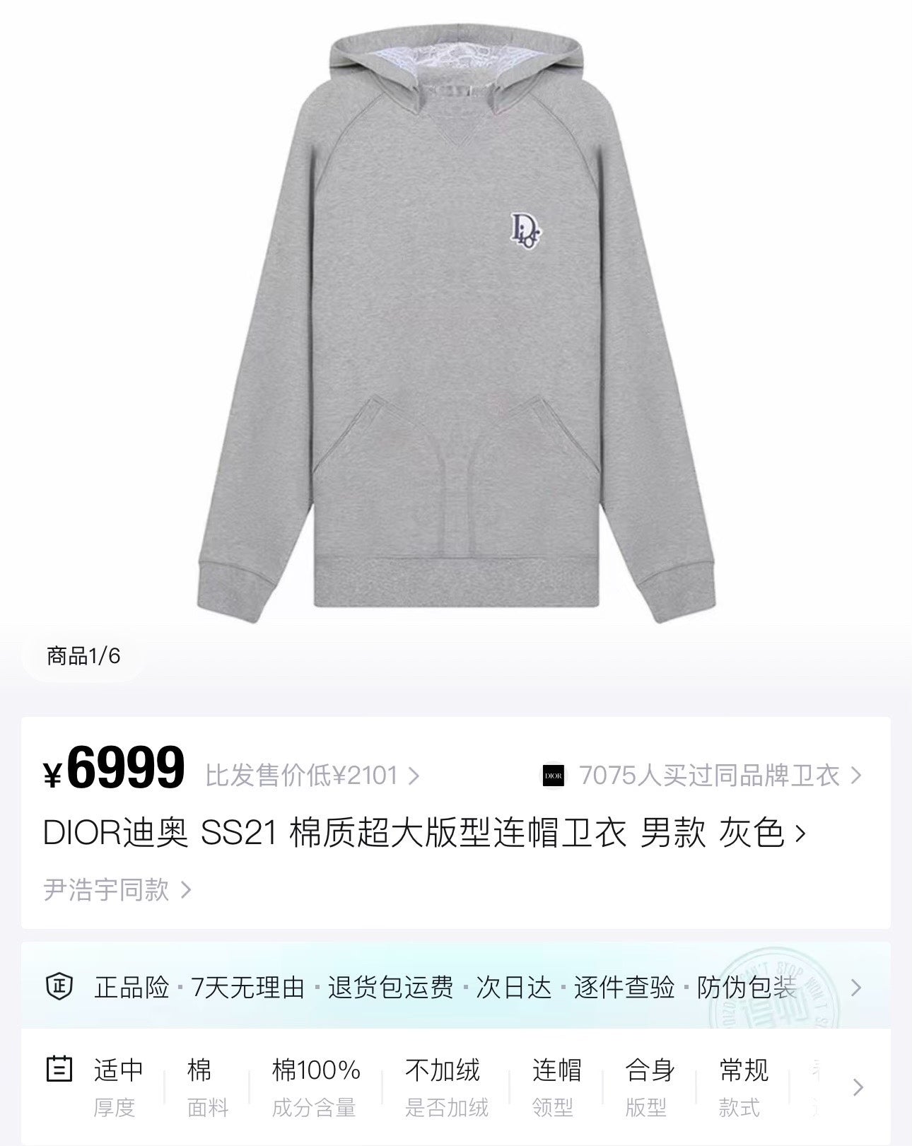 Dior Gray Logo Hoodie with Embroidery