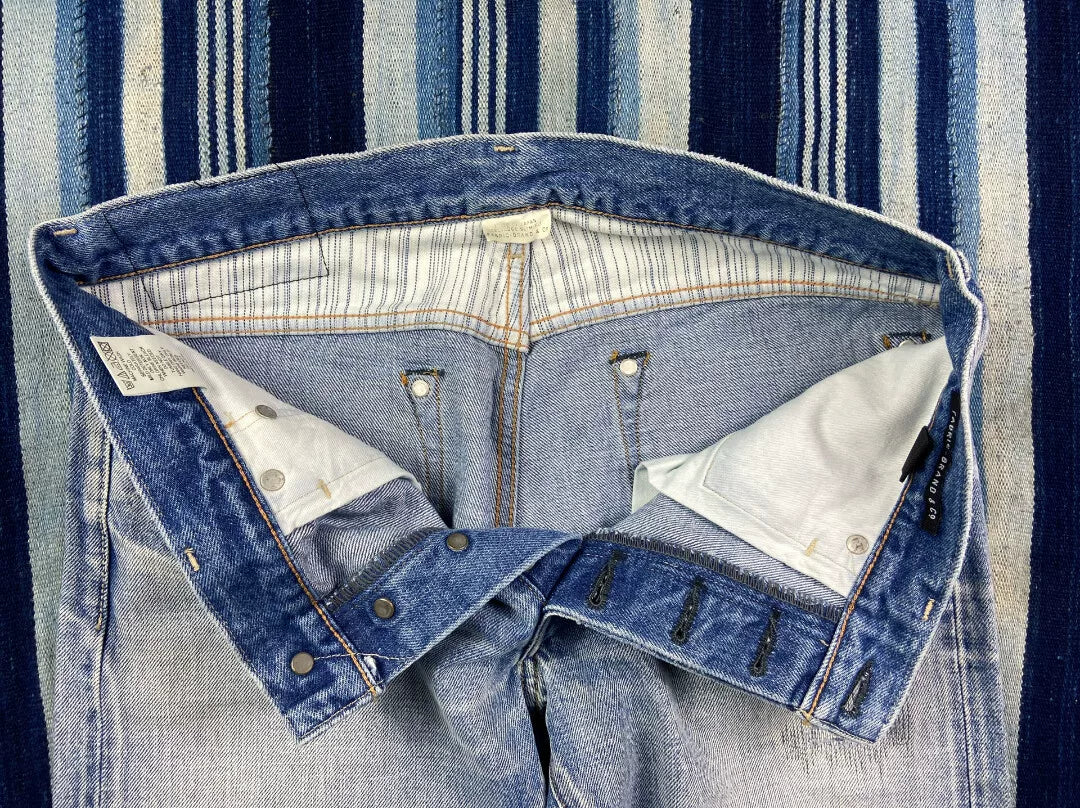 distressed raw wash denim jeans by fabric-brand&co