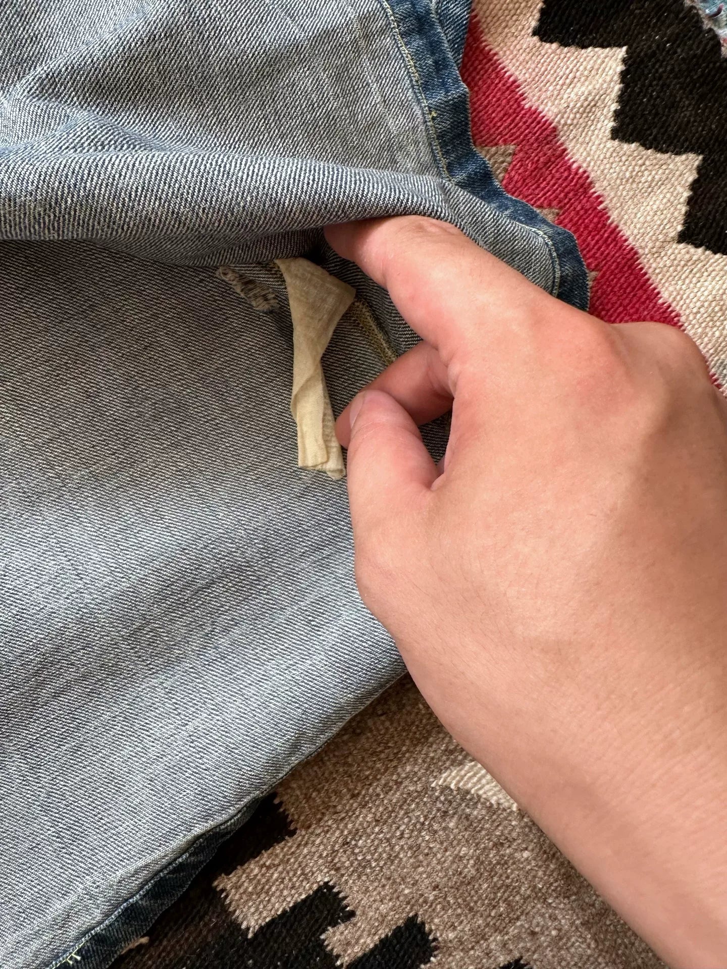 distressed rrl denim shirt with heavy aging