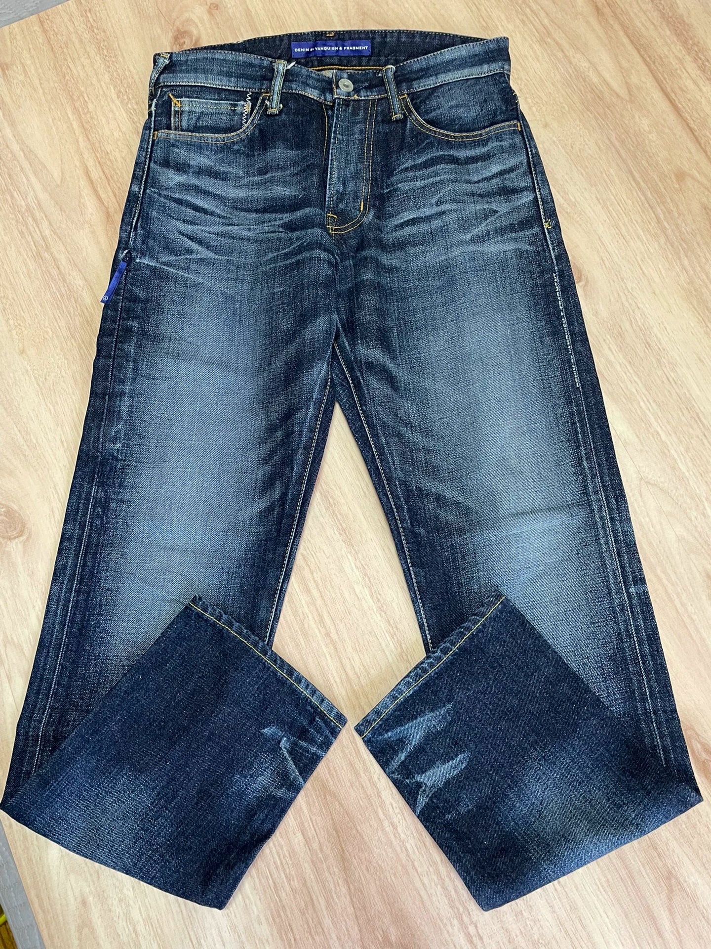 fragment lightning wash denim pants
