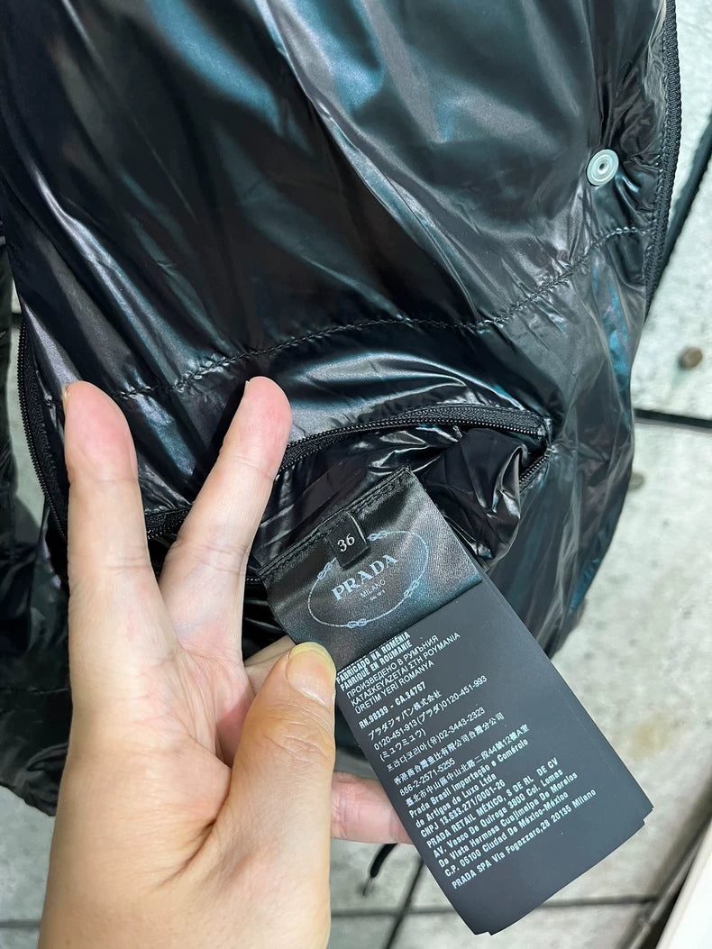 Prada Black Logo Puffer Jacket with Removable Sleeves