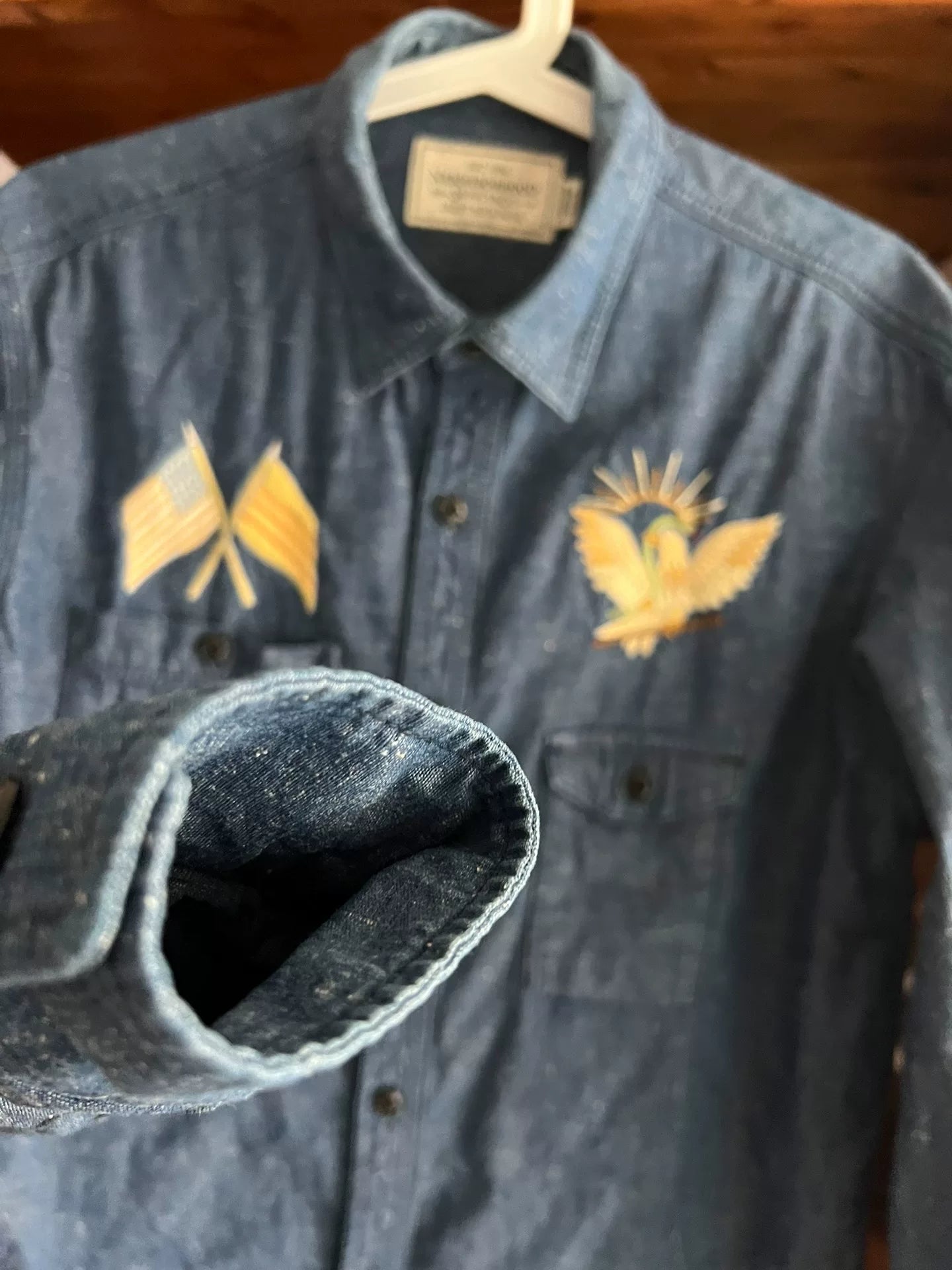premium blue denim embroidered utility shirt