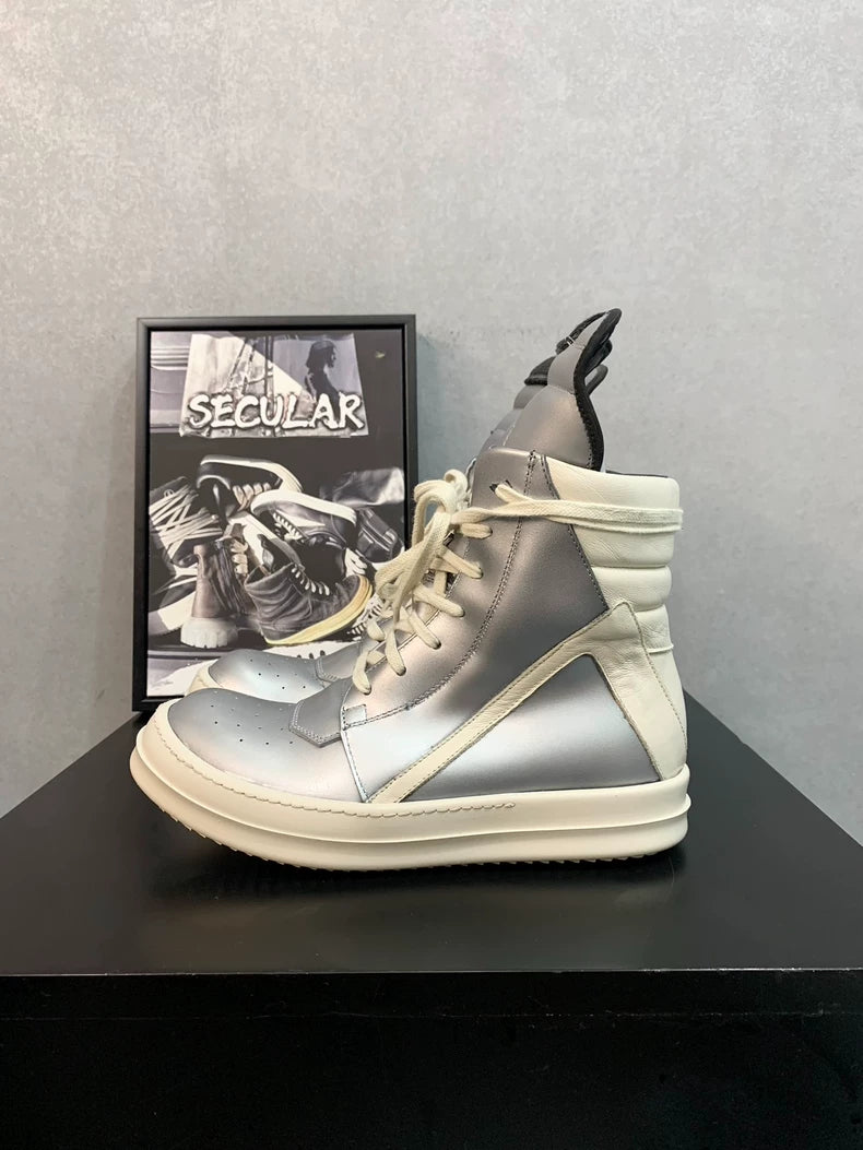 Rick Owens Silver Metallic High Top Sneakers-yf