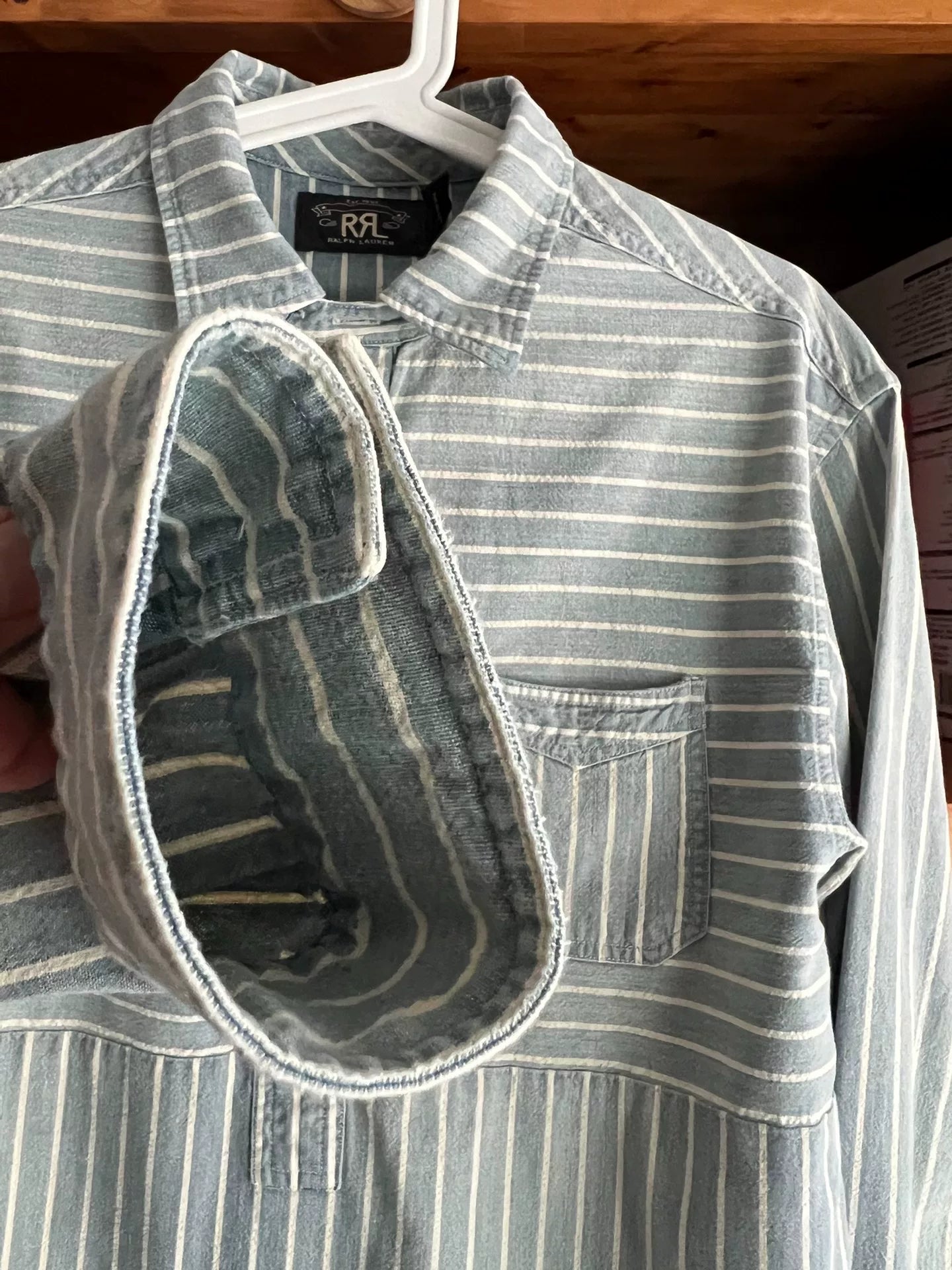 RRL Vintage Striped Blue Dye Pullover Shirt