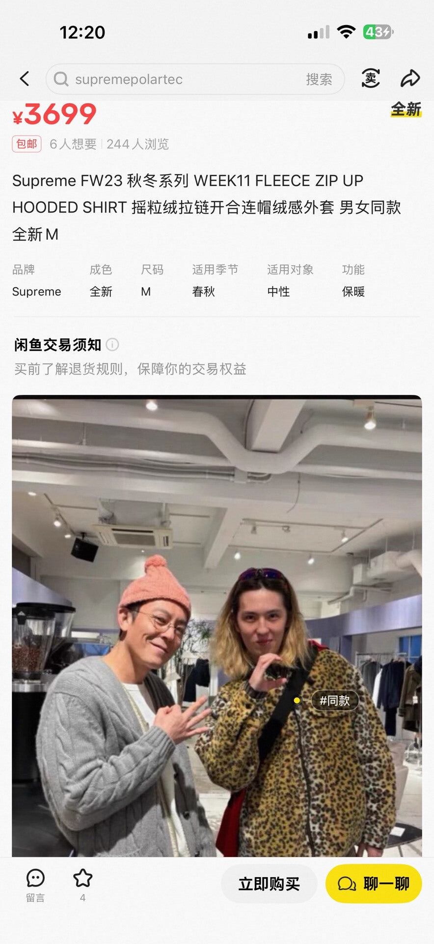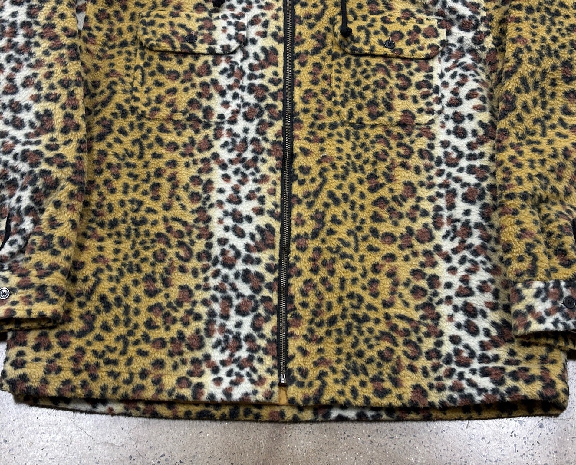 supreme leopard fleece zip up hooded jacket